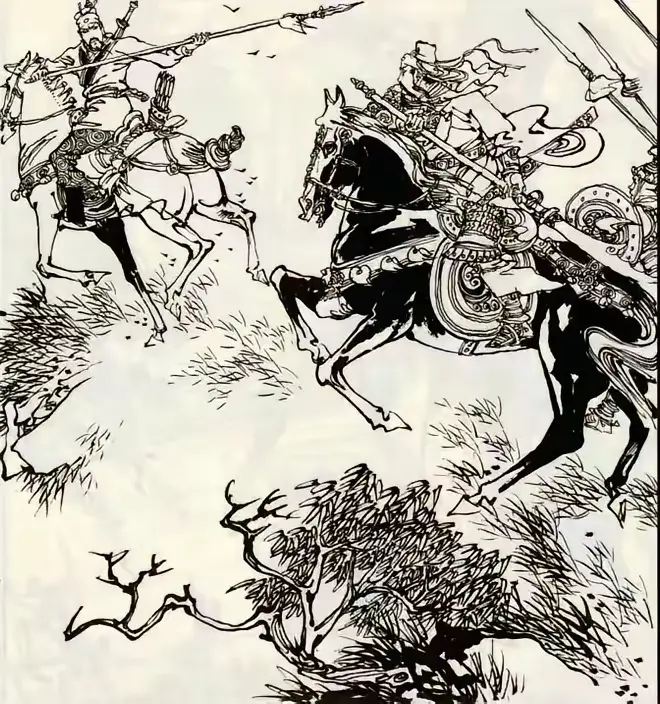 瓦岗寨元帅秦琼亲自会战“赛关爷”,怎奈力怯不敌,只得回马就跑,“赛关爷”紧追不舍。