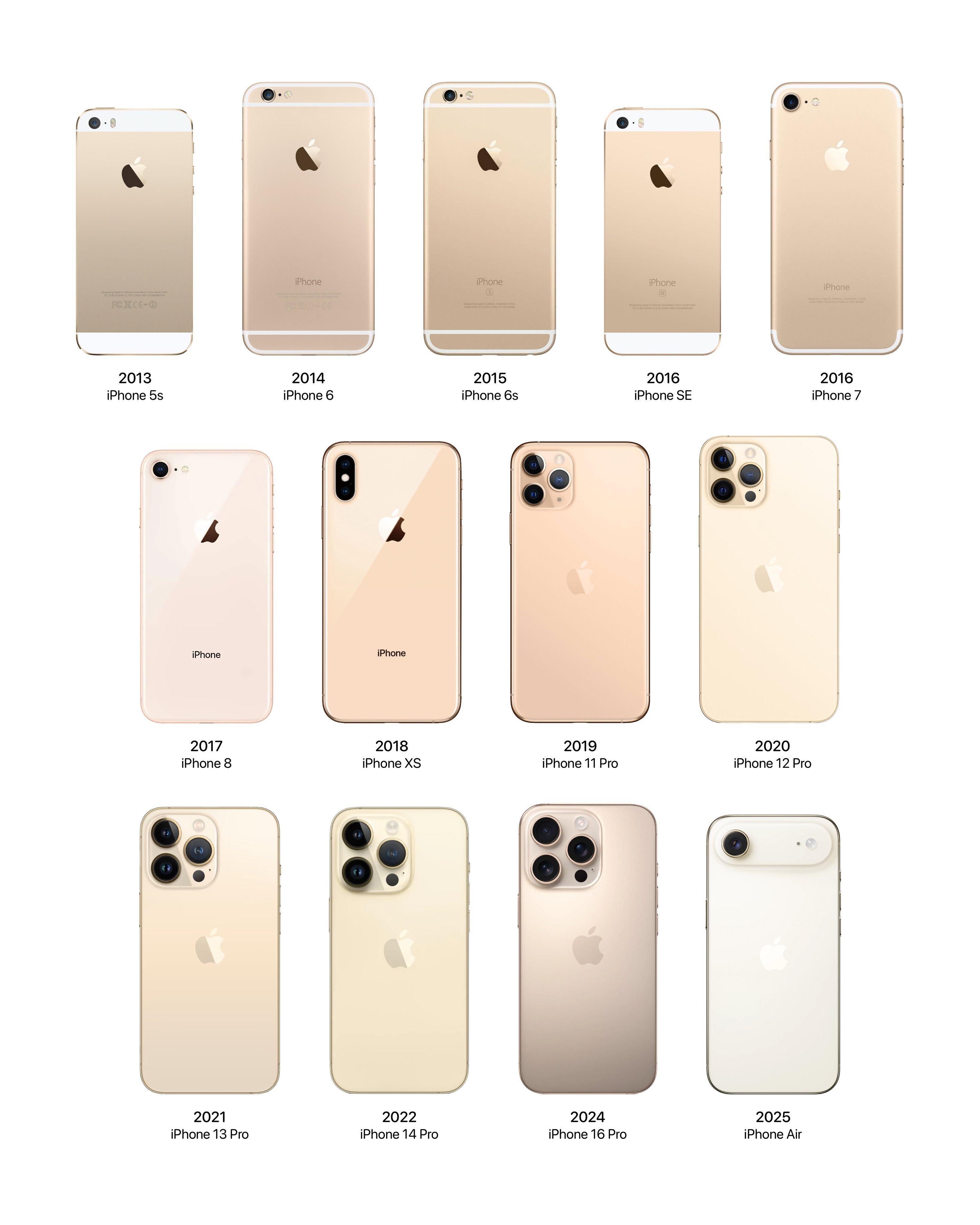 苹果是真心喜欢金色,从iPhone 5S到iPhone 14 Pro从未缺席,iPhone 15 Pro隐退,iPhone 16 Pro回归,iPhone 17 Pro没金色但iPhone Air有。
