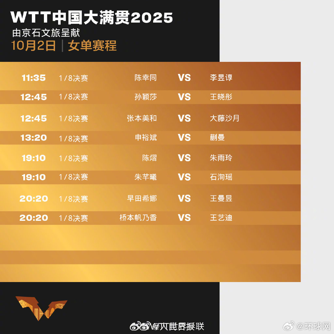 【转发加油!#王楚钦孙颖莎等今日继续出战#】#国乒中国大满贯赛程#2025WT