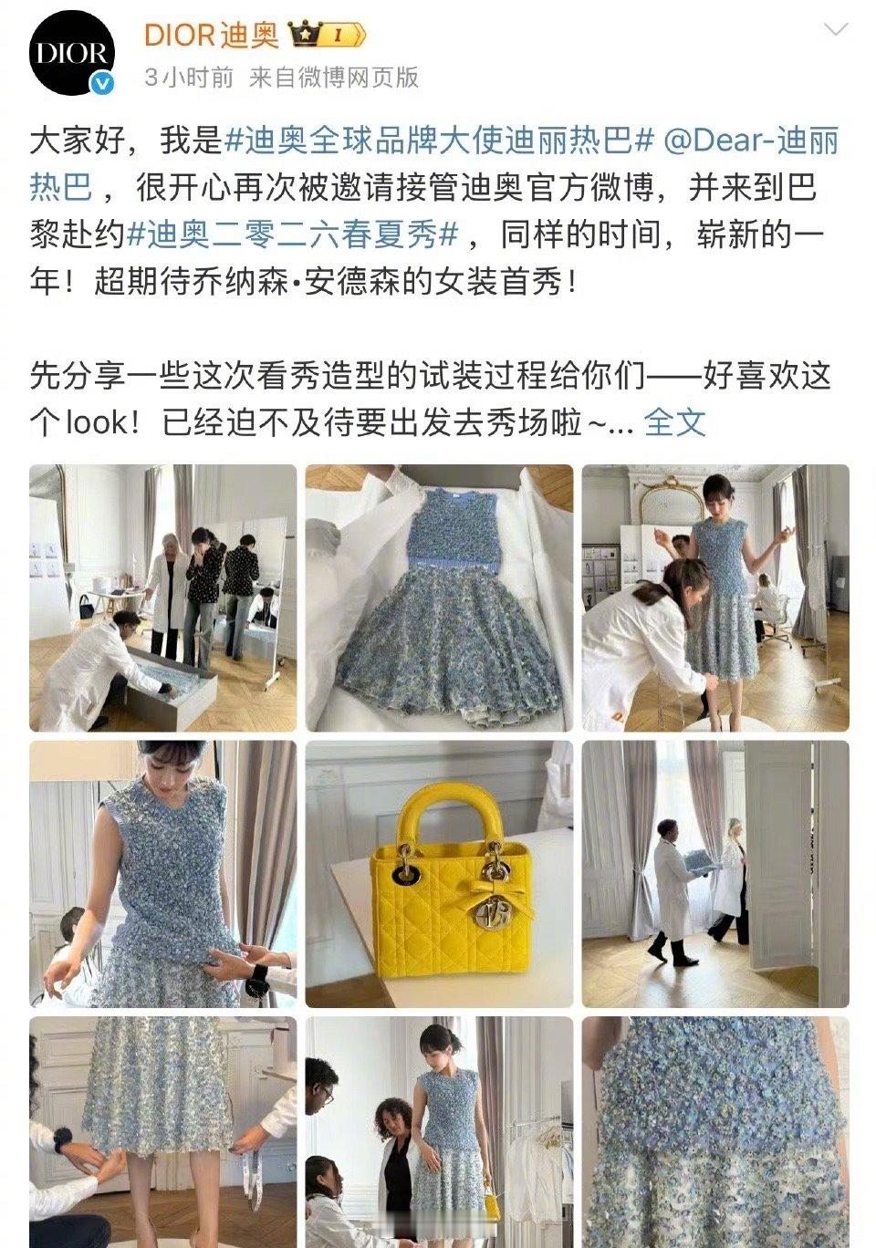 Dior连发4条迪丽热巴dior公主来了