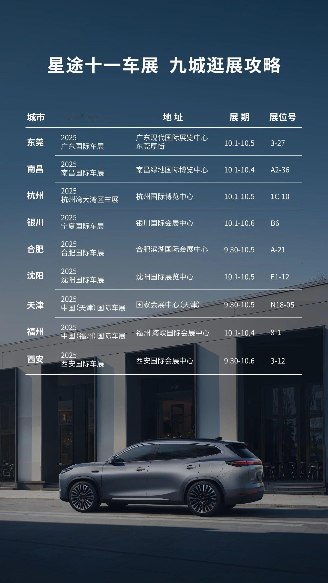 关注智驾车型的朋友注意了!星途ET5国庆期间登陆东莞、南昌、杭州、银川、合肥、沈阳、天津、福州、西安九大城市车展,错过拍大腿~作为全球首搭地平线HSD及国产最强算力智驾芯片征程6P的高端车型,星途ET5开起来就像身旁有个驾龄20年的老司机,开的又稳又好,辅助驾驶能力堪称同级天花板!年轻家庭换车想选智慧安全座驾,星途ET5一定要重点关注!