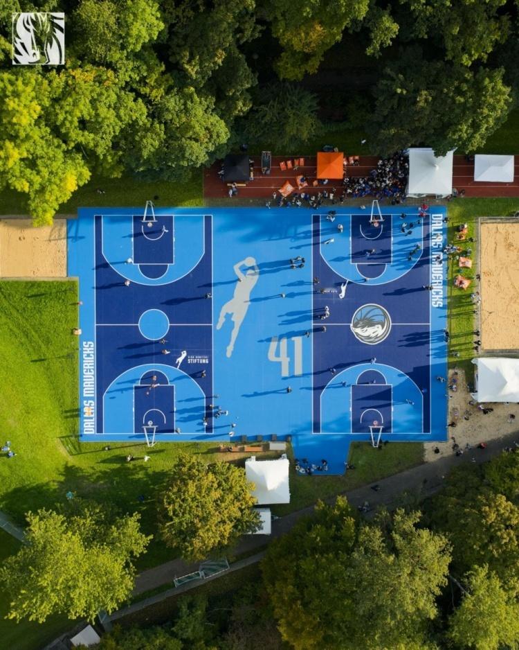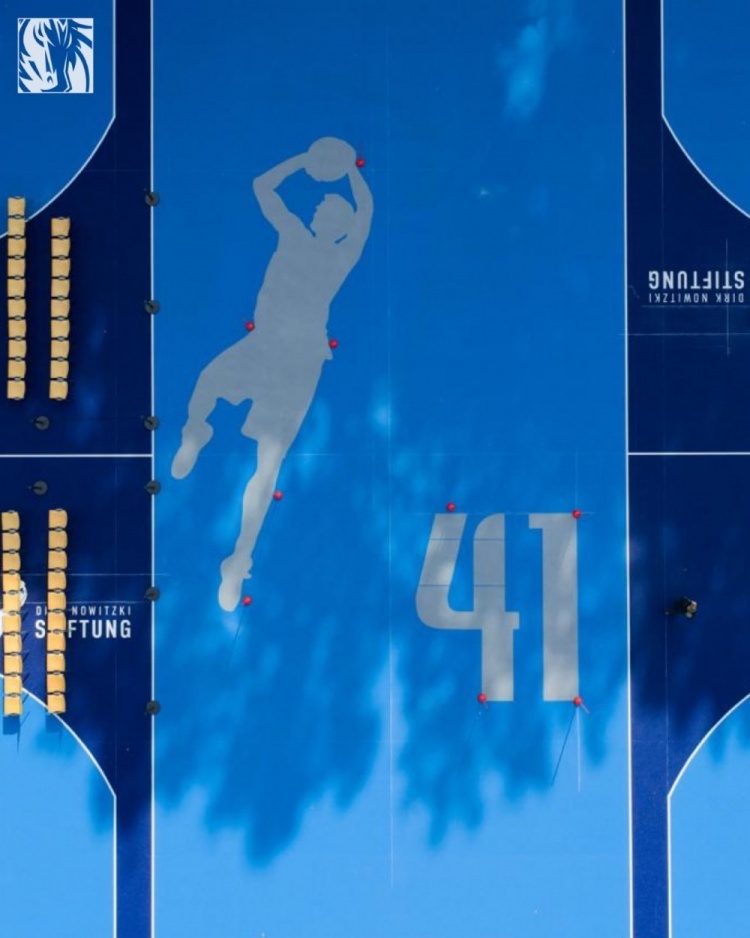 独行侠社媒更新动态,晒出了在诺维茨基家乡德国维尔茨堡的翻新球场照片。