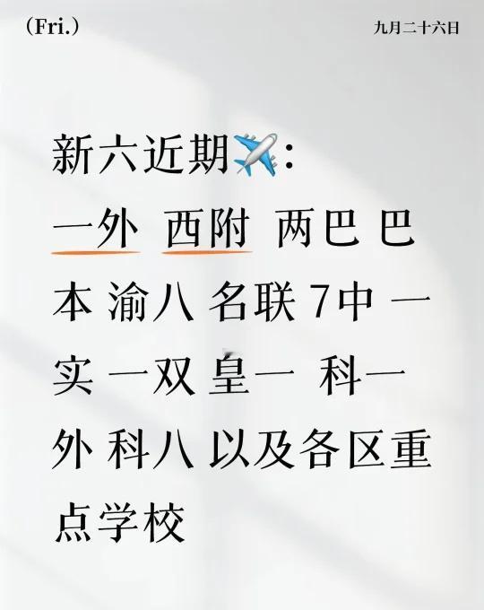 新六近期✈: 一外 西附 两巴 巴本 渝八 名联 7中 一实 一双 皇一 科一外 科八 以及各区重点学校重庆教育 升学规划 教育新选择 小升初 软糖 飞机票