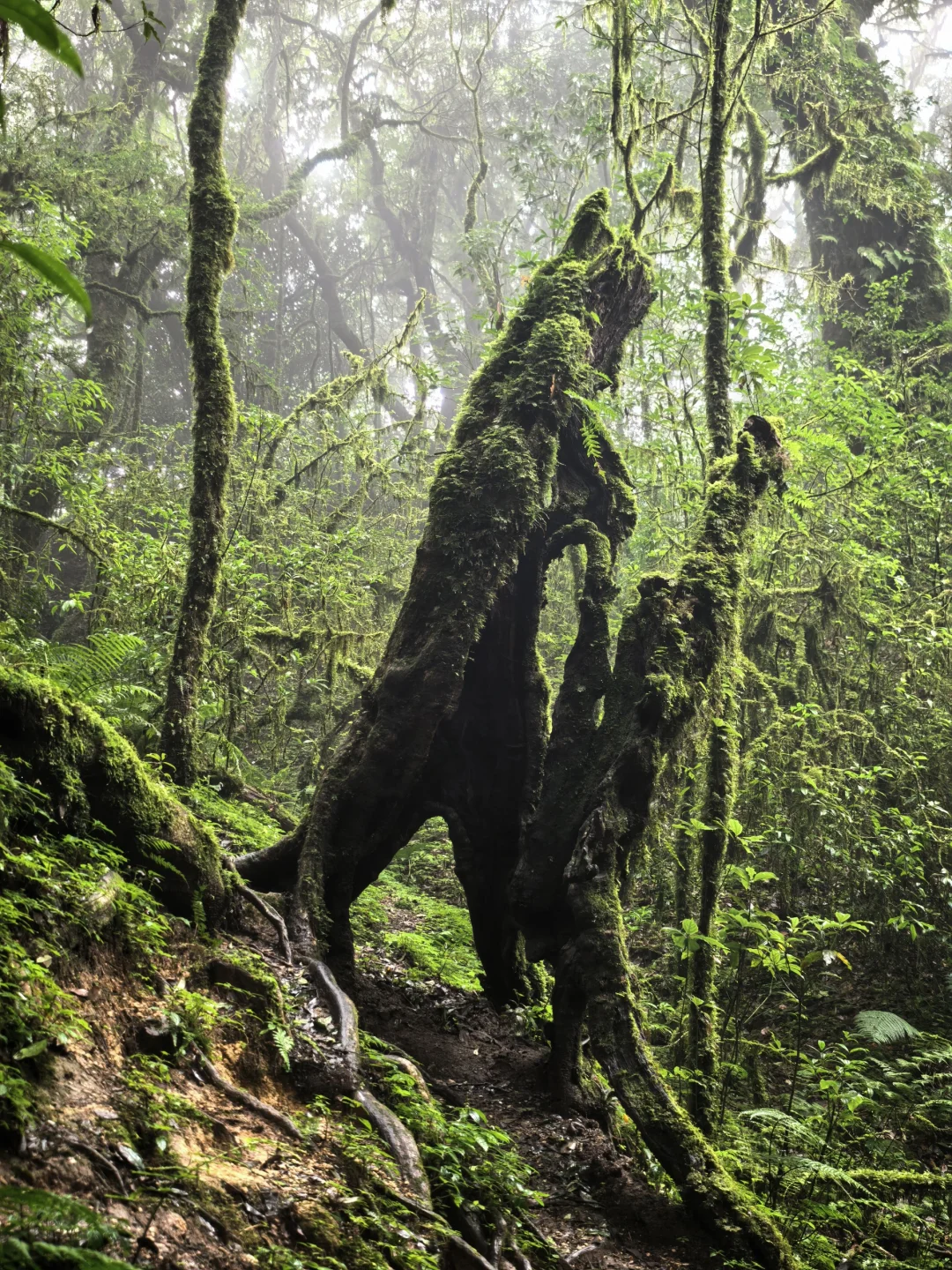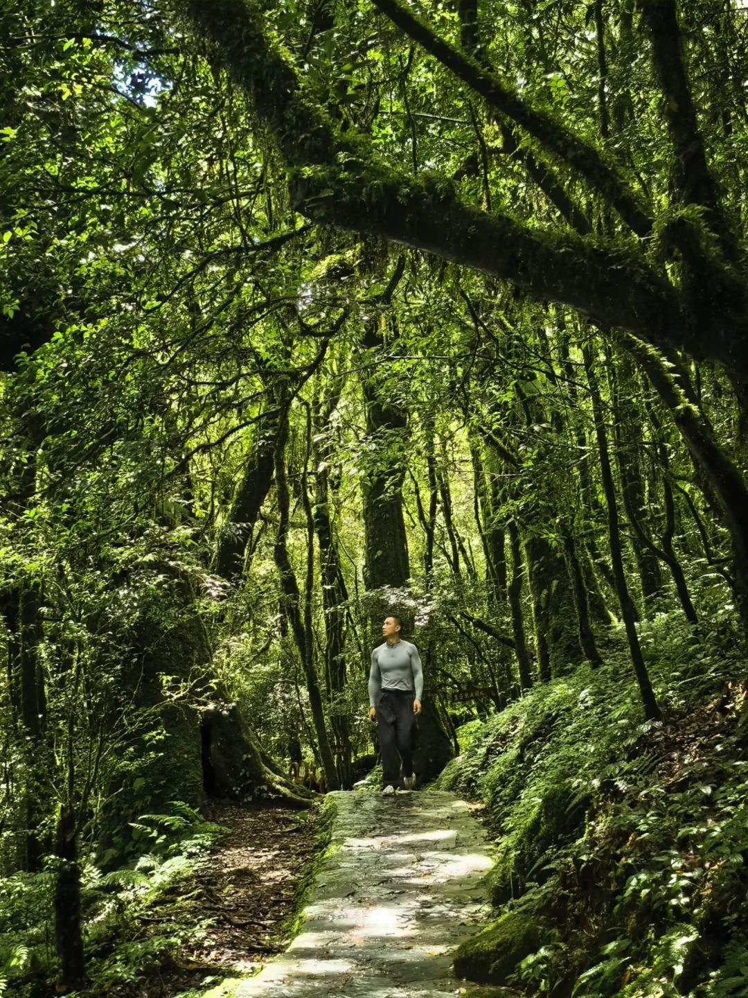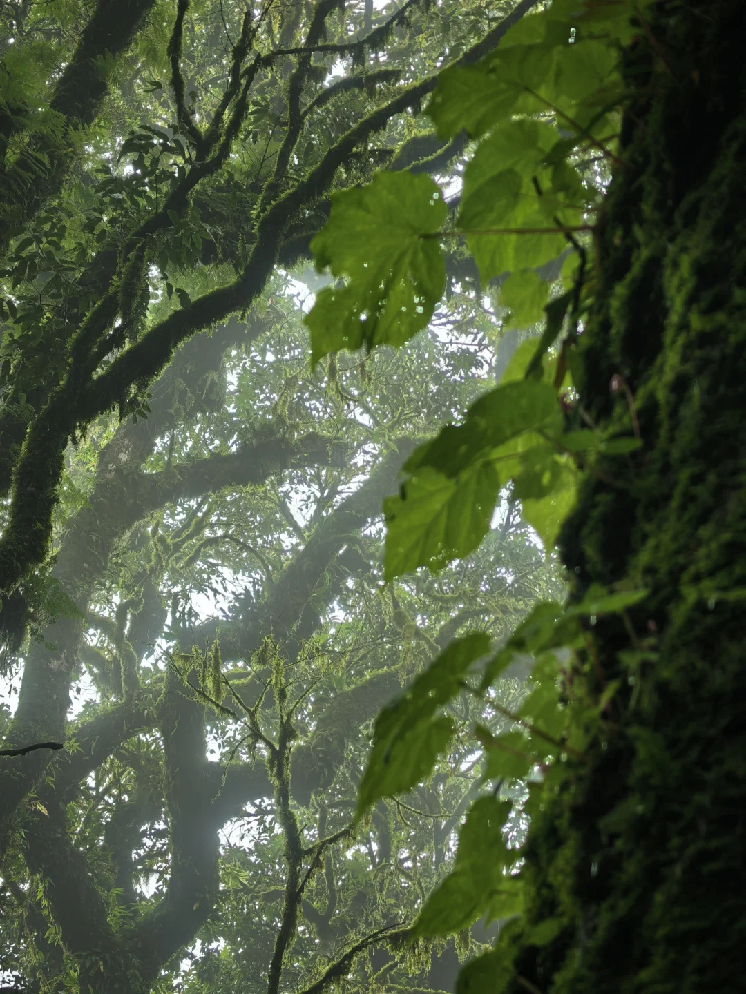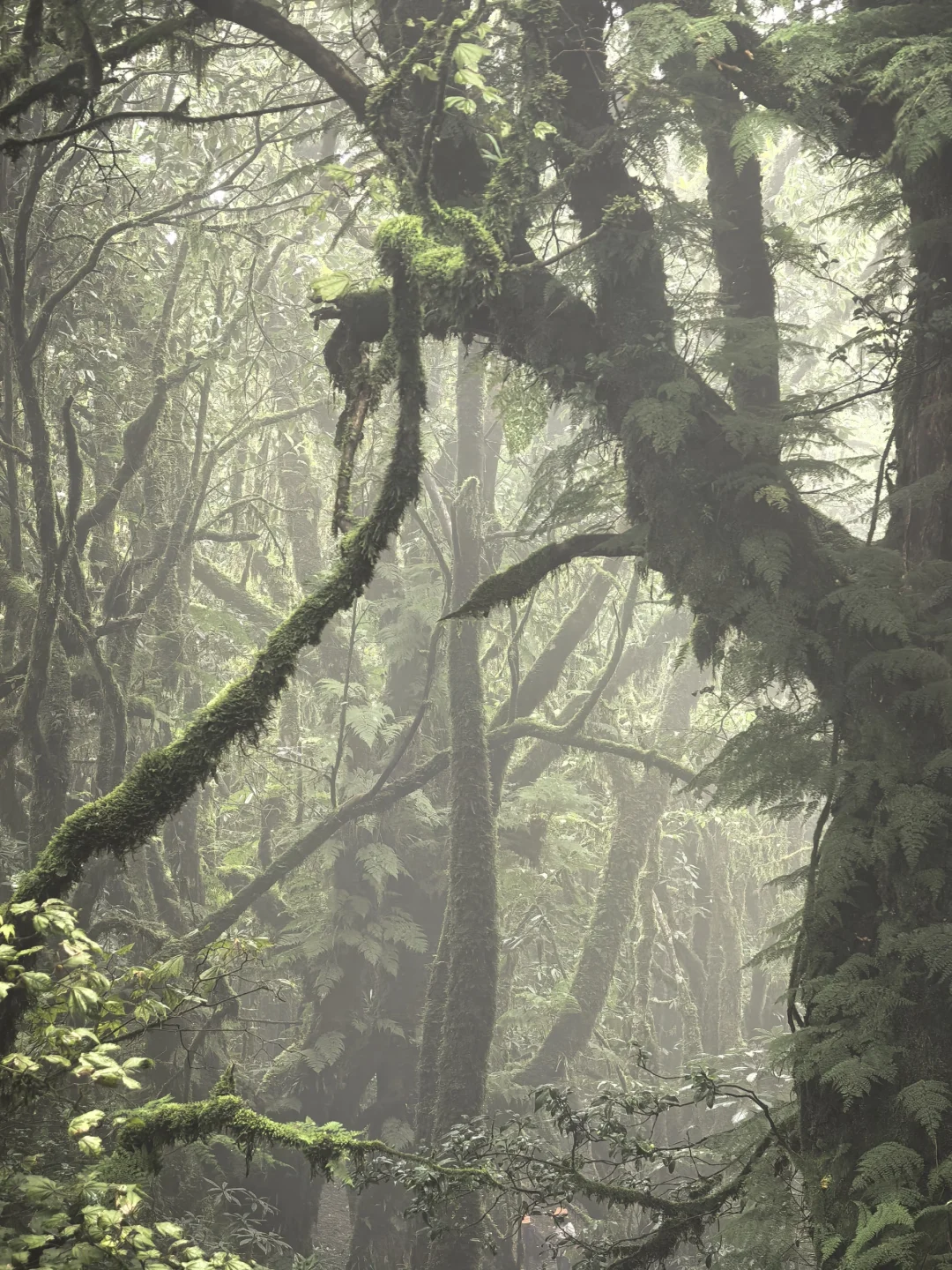起初只是为这种原始力量着迷,结果没走几步,前一秒还微亮的天空骤然暗下来,迷雾像巨大的幕帘遮天蔽日,眼前的山林只剩模糊的轮廓,鸟兽的啼叫在迷雾里回荡穿梭,路过的游客反复说着:别回头别回头。。。本来只是感叹这天气的变幻莫测,倒也给我吓出一身冷汗