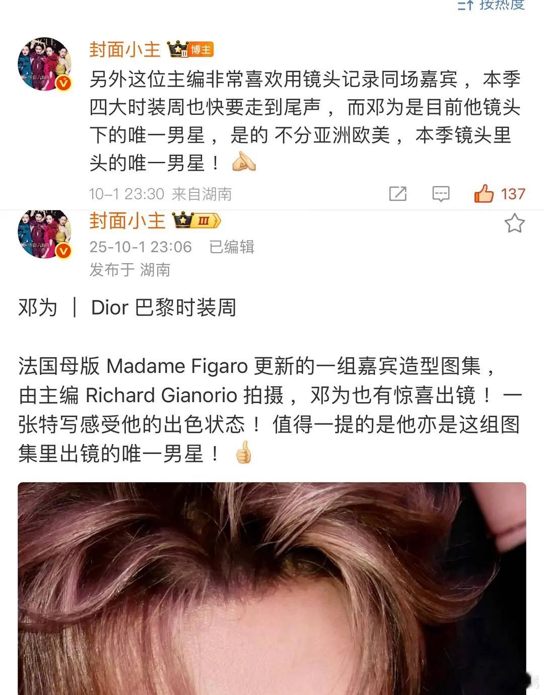 邓为成为迪奥大秀当天被费加罗法版、vogue意版报道的唯一🇨🇳艺人,这是真闪耀巴黎了!
