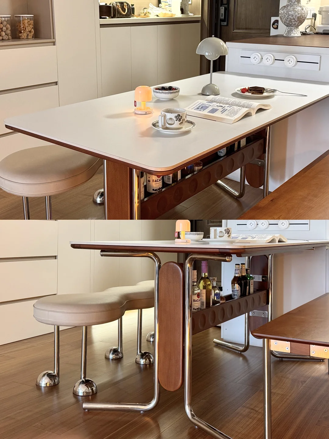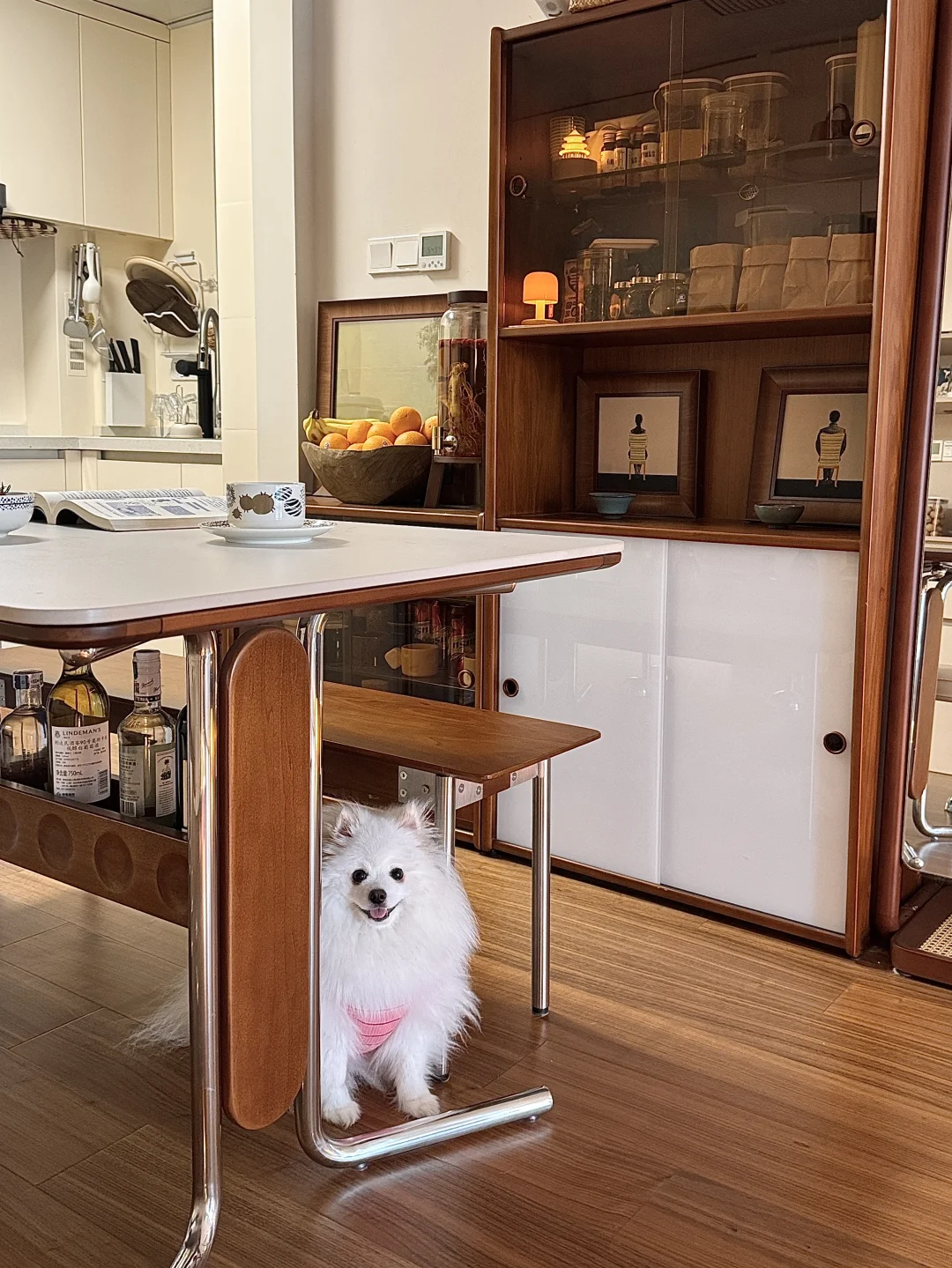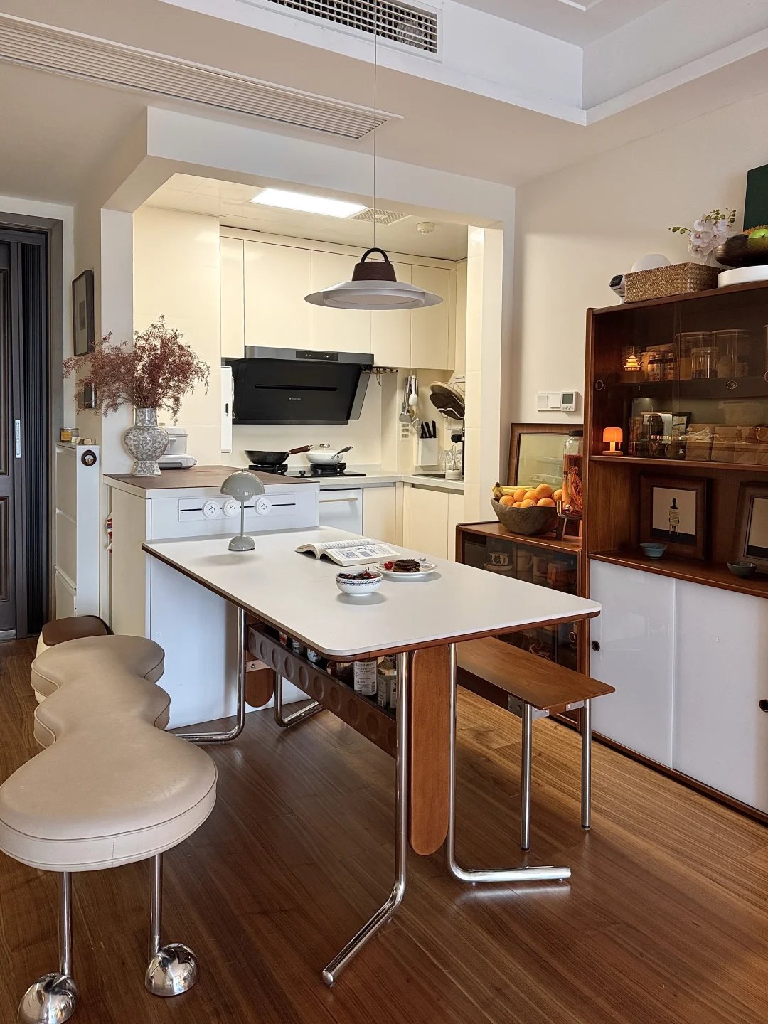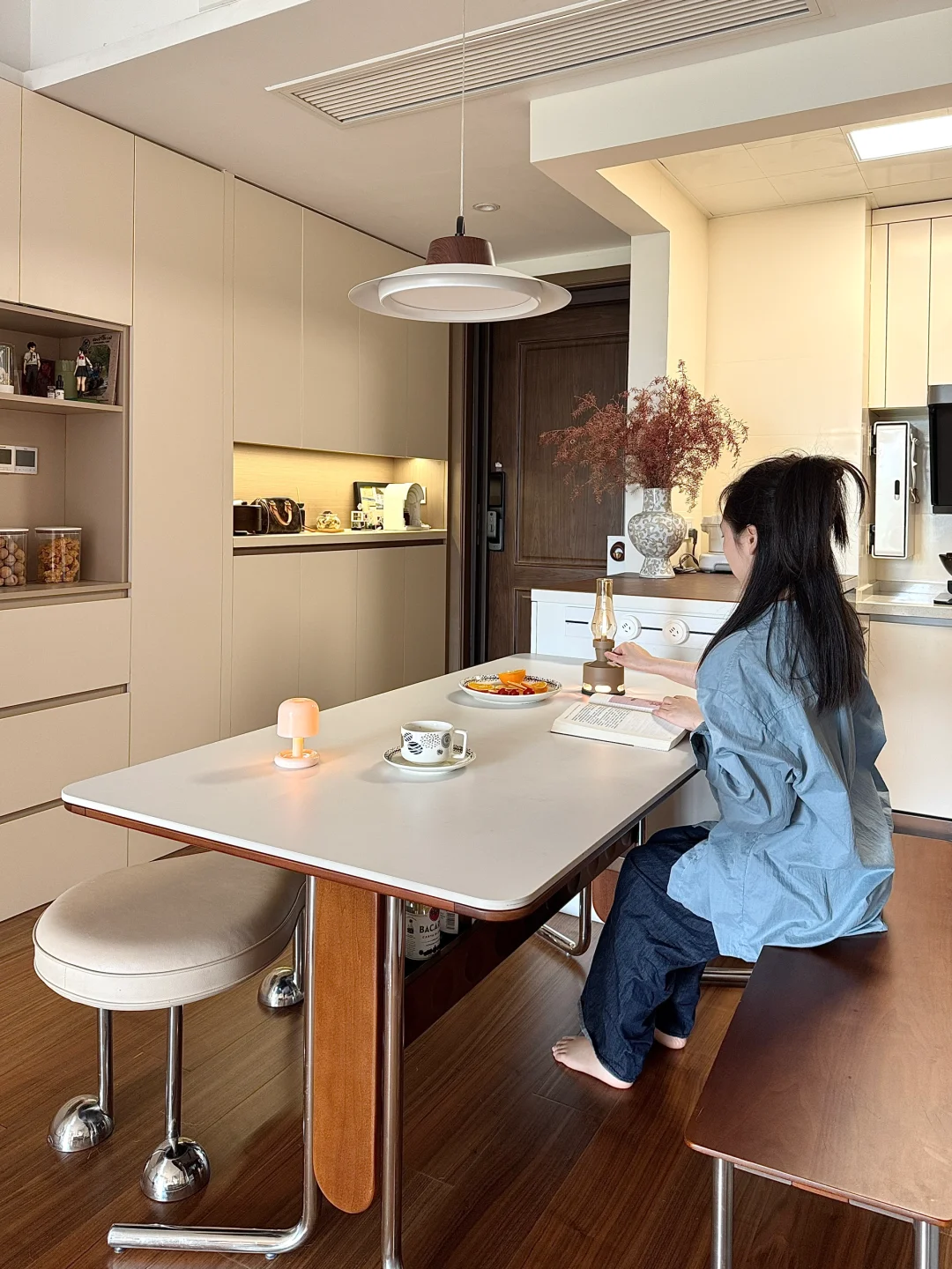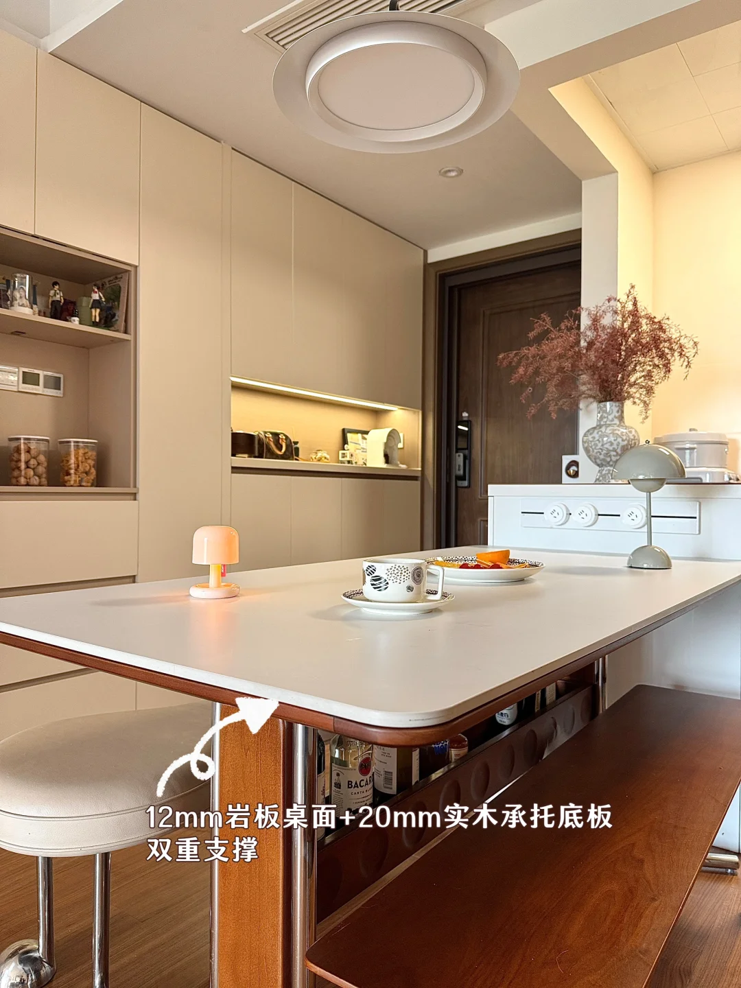又在岛台延伸放了张1.6m的卡熙缇川溪餐桌 拓宽操作空间
