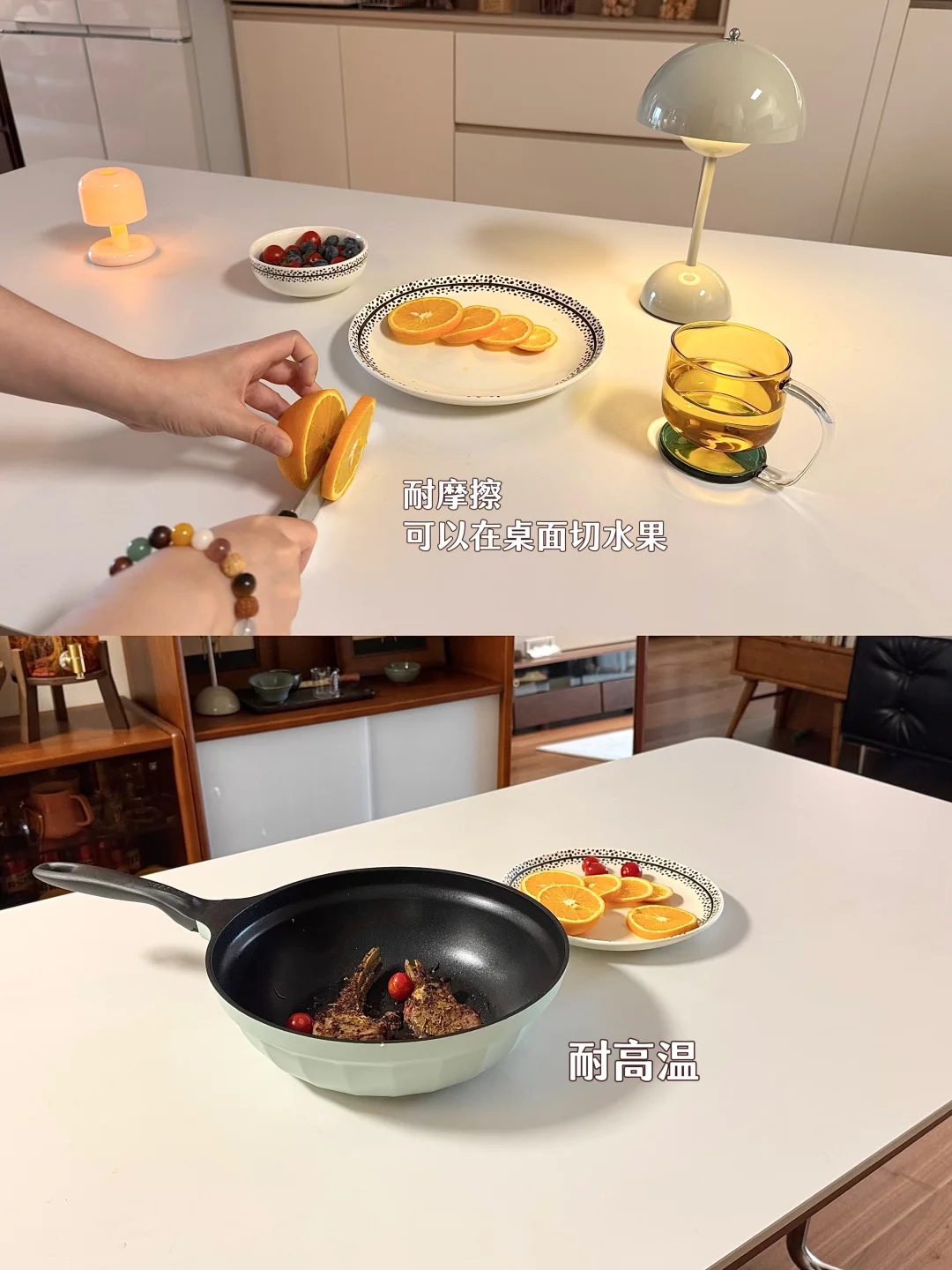 12mm白岩板桌面+20mm实木承托框架,支撑力更足