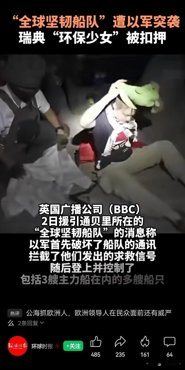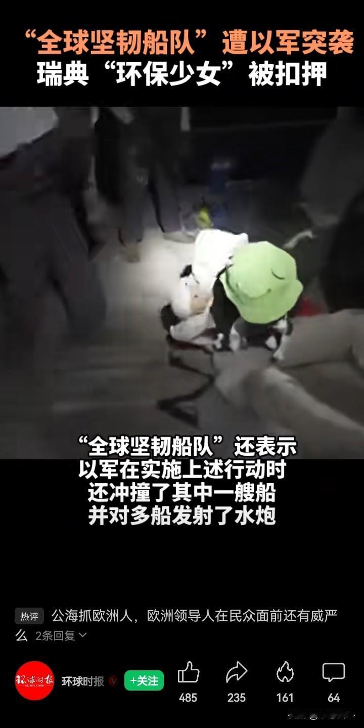 瑞典“环保少女”,虽然她的一些关于气候环保的观点偏激了一点(更大的可能是被西方国家政府当枪使),我不能完全同意。但是,她能两次随船前往加沙,要缓解在那里的巴勒斯坦人民遭受的苦难,说明她是一个善良的人! 很早之前就知道“环保少女”,也就是格蕾塔·通贝里,感觉她以“辍学号召环保”,这种环保主义方式还是很激进的。 此后,她参加各种抗议活动,也站上国际组织的讲台,非常“高大上”。只是,欧美国家只是借着炒作“环保少女”,挥舞政治正确的大棒,张口发展中国家碳排超标,闭口中国人吃肉毁坏森林,想要剥夺发展中国家的权益,这就很难让人接受了。 “环保少女”格蕾塔·通贝里,其实就是一个牵线木偶。2019年,普京曾批评格蕾塔·通贝里,称她是被成年人利用的无知青年,但是同时普京表示相信格蕾塔·通贝里是一个善良且非常真诚的女孩! 有趣的是,很快“环保少女”把自己的社交媒体签名改为“”一个善良但孤陋寡闻的少年(A kind but poorly informed teenager)”。 此次,“环保少女”在随着“全球坚韧”船队前往加沙时,被以色列军队扣押。其实,也很好地说明了她是一个善良的人。 只是,这样的事情几个月前就发生过一次了。今年6月时,格蕾塔·通贝里与另外11人于6月1日搭乘“玛德琳”号帆船从意大利西西里岛启程前往加沙。9日凌晨,以色列外交部证实,“马德琳”号船只被以方控制,并被以军拖向以色列海岸,船上乘员遭以方逮捕并将返回各自所属国家。 被以色列驱逐后,格蕾塔·通贝里10号在法国巴黎机场接受记者采访时称,她在国际水域被 “绑架”,并非自愿进入以色列。 其实,她在6月份的前往加沙之行在欧美西方遭受到很多批评,她的祖国瑞典也不站在她一边,瑞典外交大臣认为格蕾塔·通贝里并不需要瑞典外交部的支持,因为格蕾塔·通贝里选择无视政府的旅行建议,前往高风险地区,自己“要承担重大责任”。 此次,以色列军队对“全球坚韧”船队的袭击扣押,目前只看到土耳其和哥伦比亚对此进行了谴责。“环保少女”所在的瑞典会如如何表态,还是未知数……