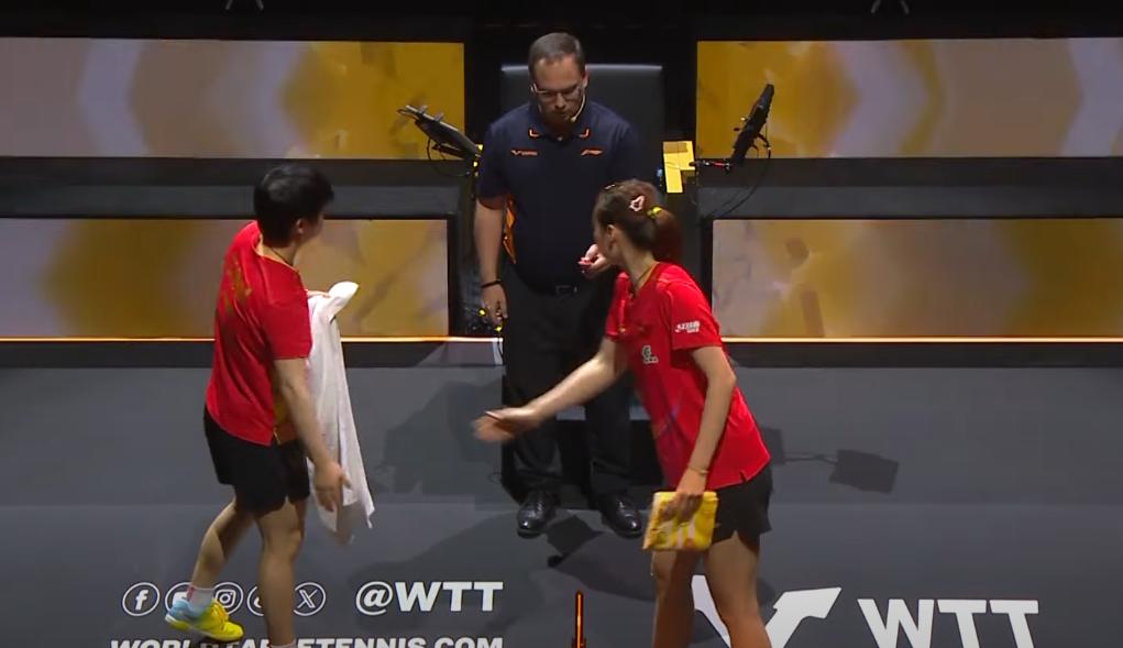 莎莎太可爱了!她有多喜欢自己的大毛巾。 开场便拿着大毛巾找裁判去了, 裁判让她抽边呢, 她不在意的用头朝王晓彤示意, 你来! 她手里没空, 忙着整理她的大毛巾呢。 这种松弛感没谁了? 想比较来看, 王晓彤的毛巾就太小了, 有网友留言, 莎莎大毛巾这么熟悉, 这不就是酒店的浴巾吗?