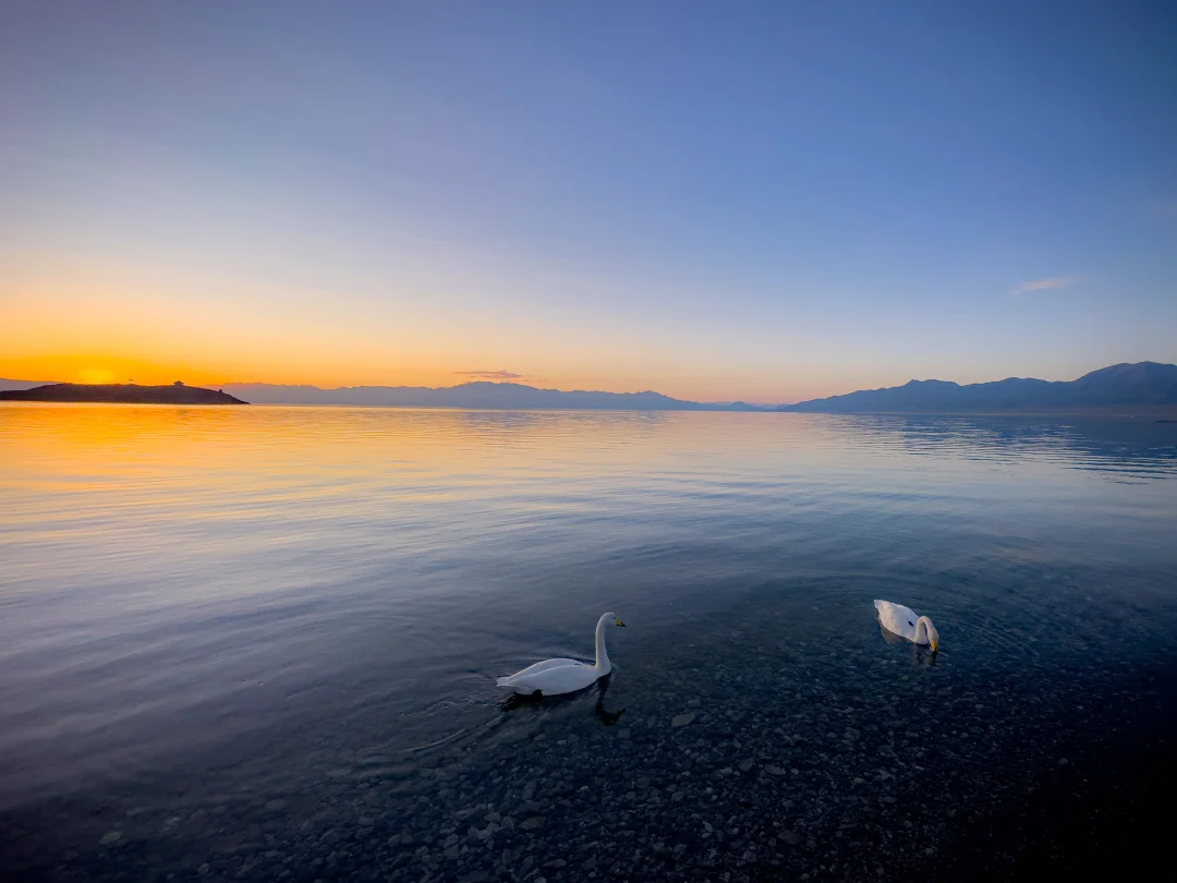 第二天:租车上午自驾去赛里木湖,路程比直接从乌鲁木齐自驾过去短的多。可以在赛里木湖玩一天,看完日落(图:5)返回伊宁市区住,或者在赛里木湖住一晚,第二天看日出(图:6、7)。