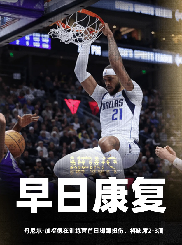 知名记者Shams转发了独行侠记者最新发布的动态: 独行侠中锋丹尼尔-加福德在训练营首日脚踝扭伤,将缺席2-3周。 这有可能让他缺席新赛季的开赛阶段。