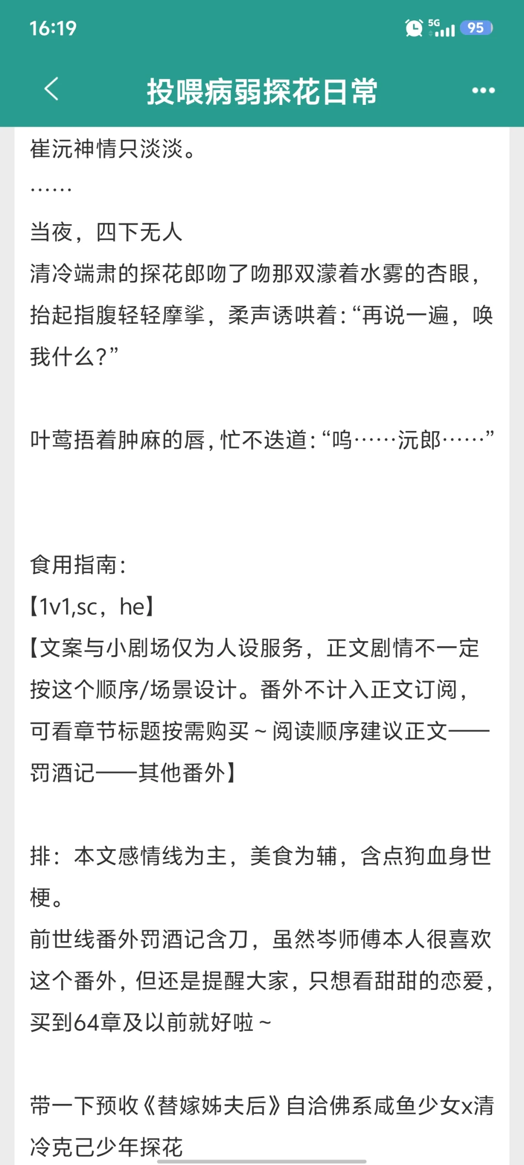 《投喂病弱探花日常》作者:岑清宴 心大乐天小厨娘vs清冷病弱探花郎 女主穿越,古言美食甜宠文