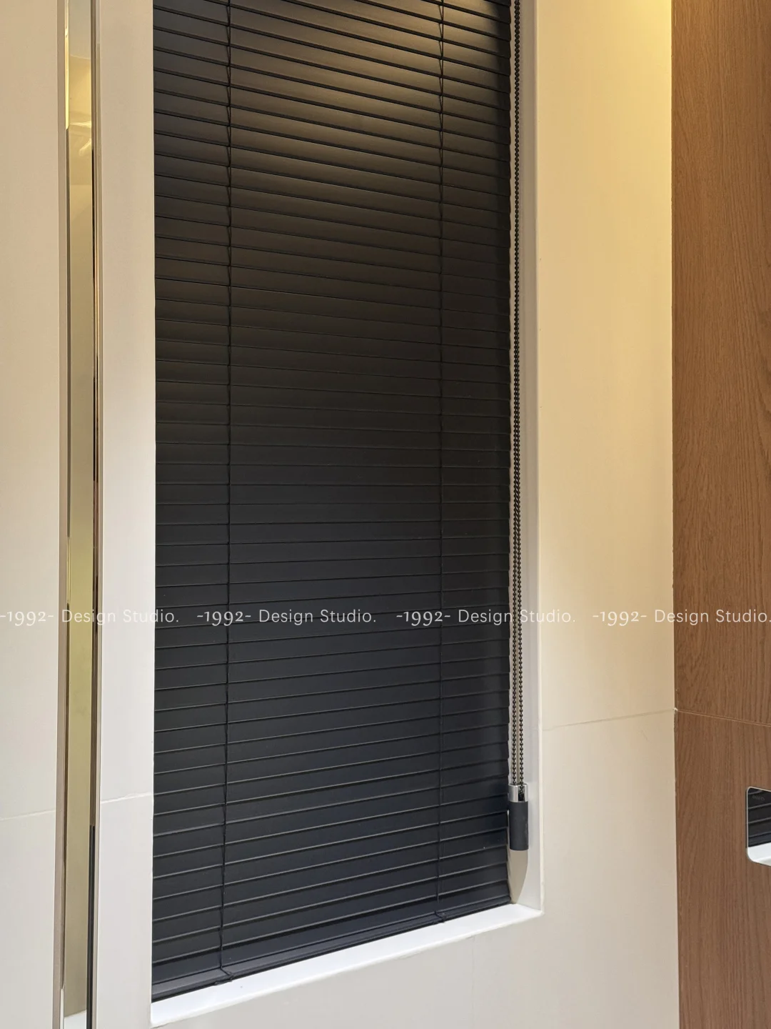 黑色百叶窗帘,高级感直接拉满,这也太酷了 安在淋浴区,防水好打理
