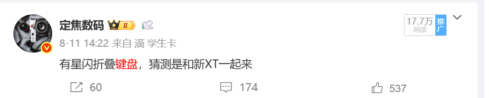 BOW做的第三方星闪键盘,适配XTs的,好像没有公布,估计等一等,如果是XTs用户,其实可以留意这个品。