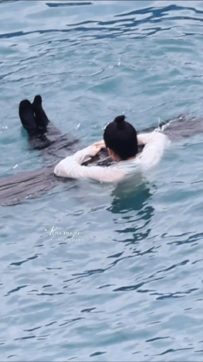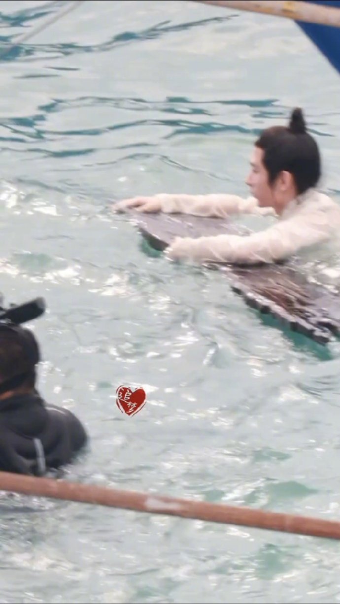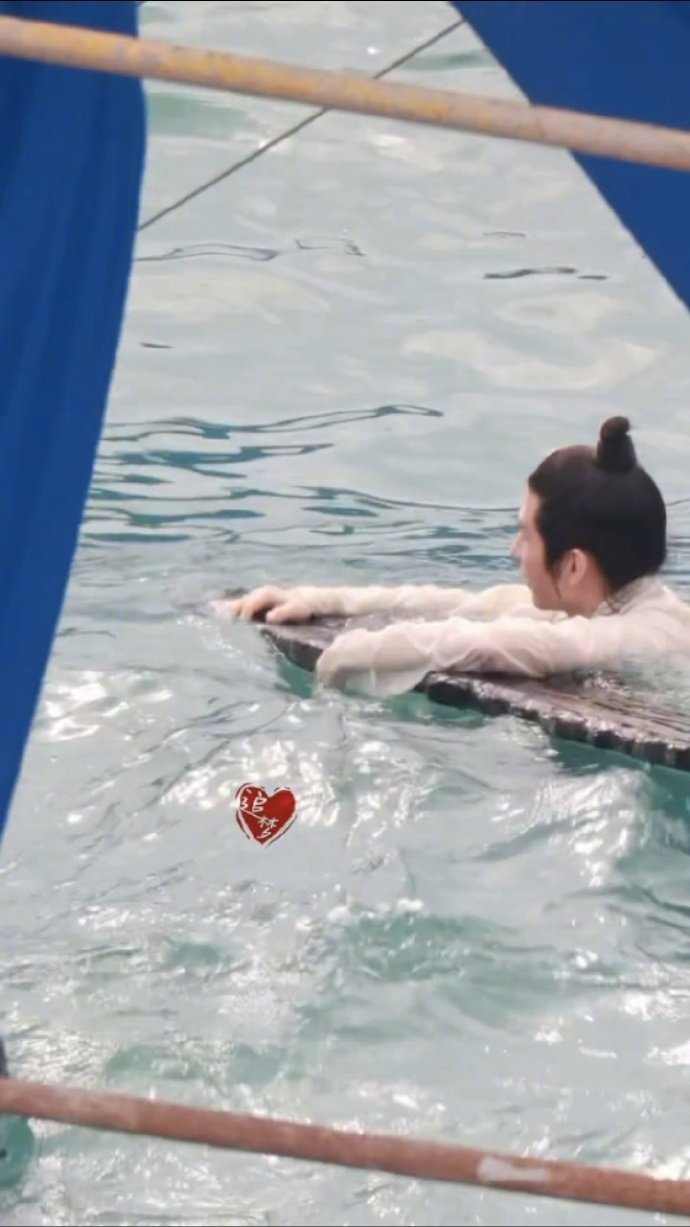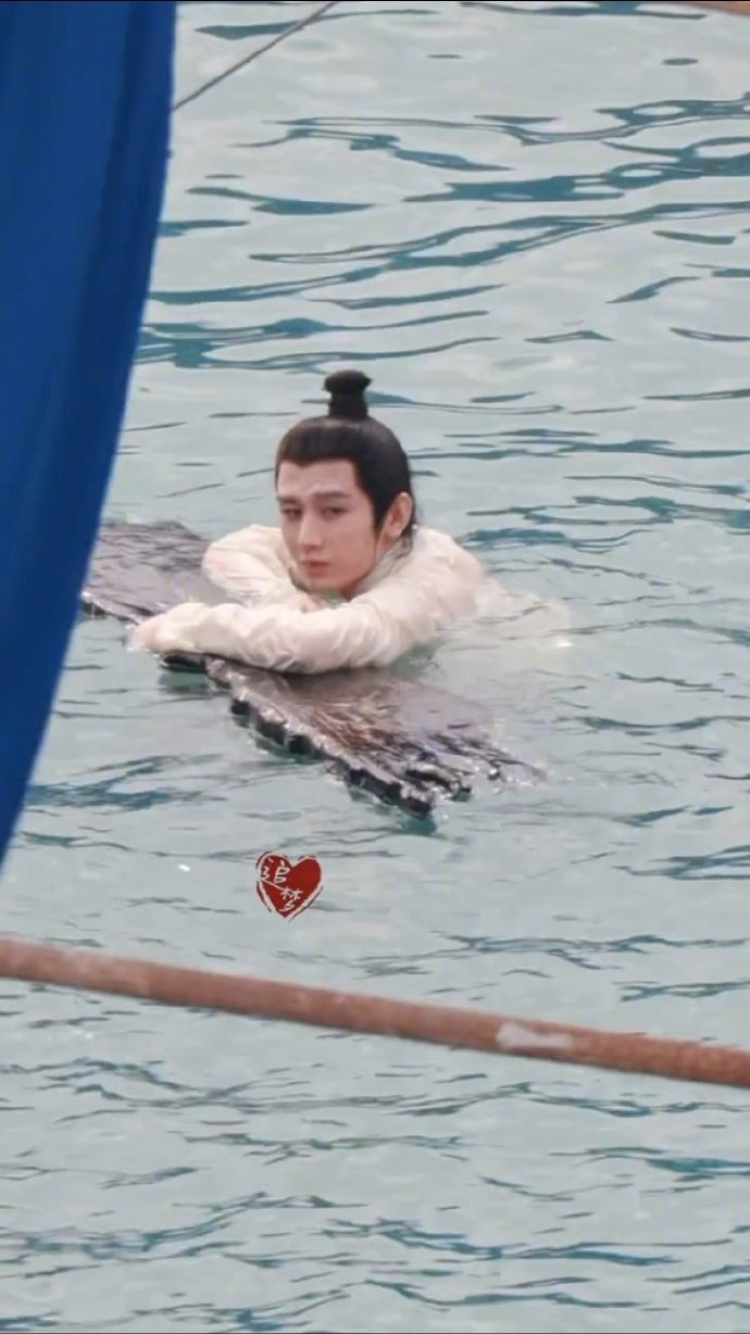 成毅两京十五日水中戏路透,成毅戏水,满分可爱值的成毅上线啦,咱就说抱着木头的成毅,你别太哈基米拉,注意安全拍摄顺利~