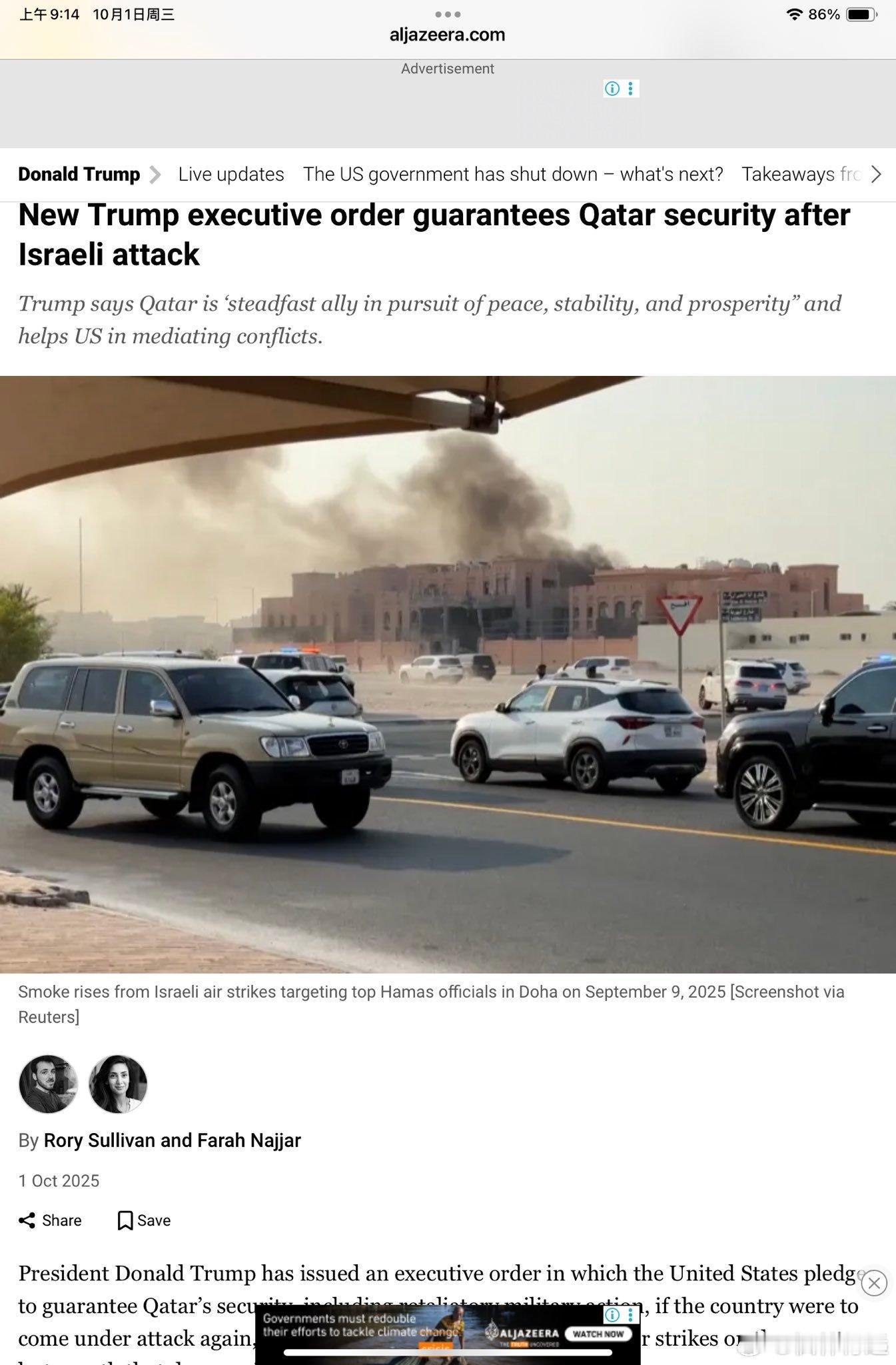 🚨🔥为了保住卡塔尔的面子,川普今天还签署行政命令,承诺保卫卡塔尔安全!