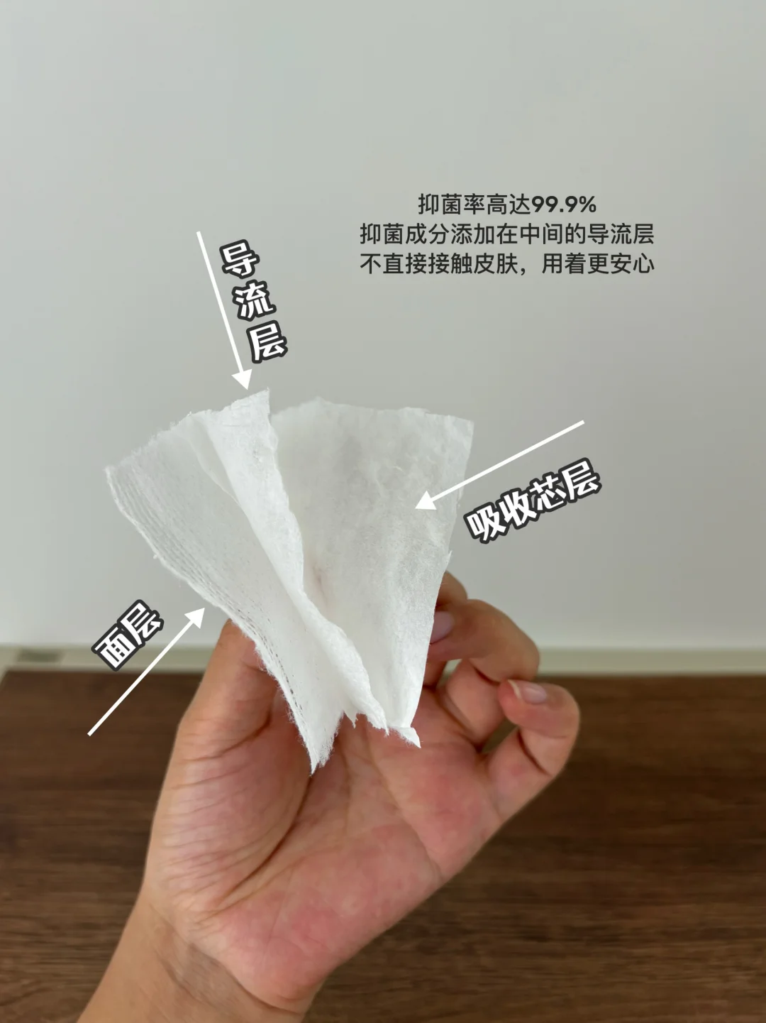 产后身体脆弱,最怕细菌感染,它的中间层特别添加了抑菌成分,经血一下渗就处理了,不怕刺激伤口,用着特安心