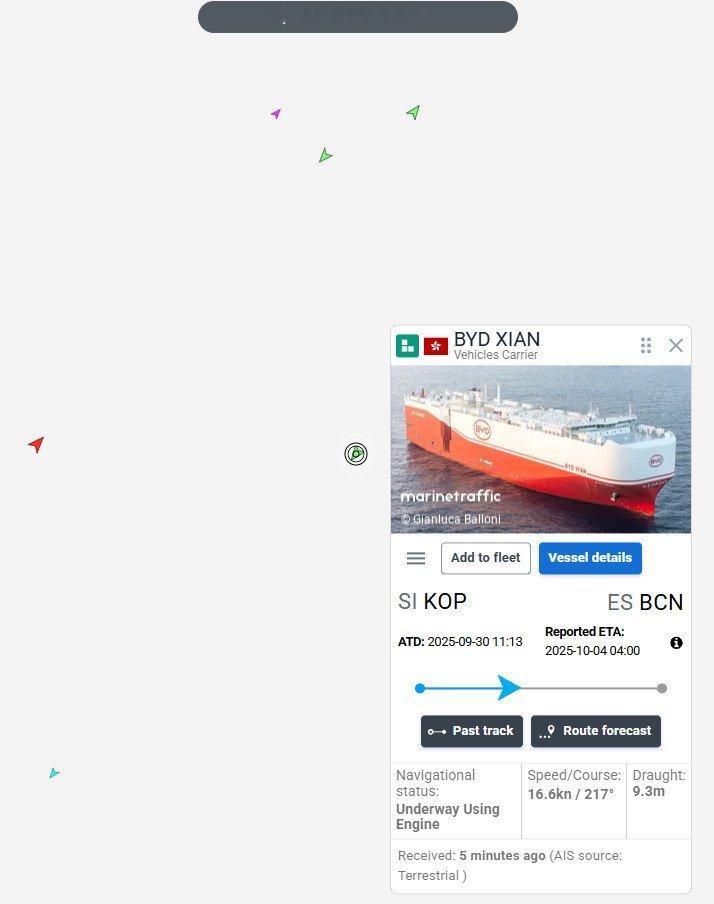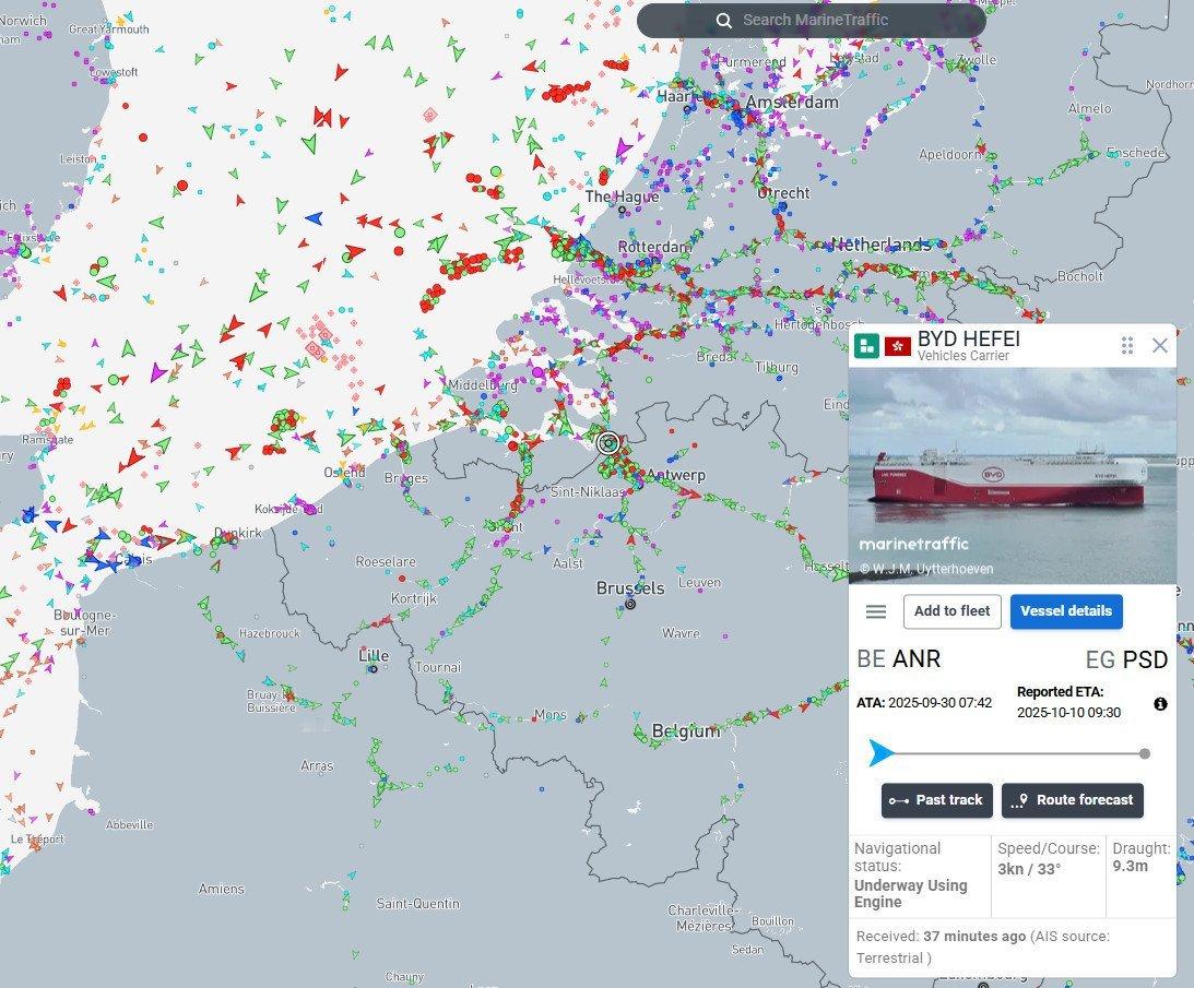 郑州号:从泰国发货的货轮已在英国卸完货,正在开往比利时途中;