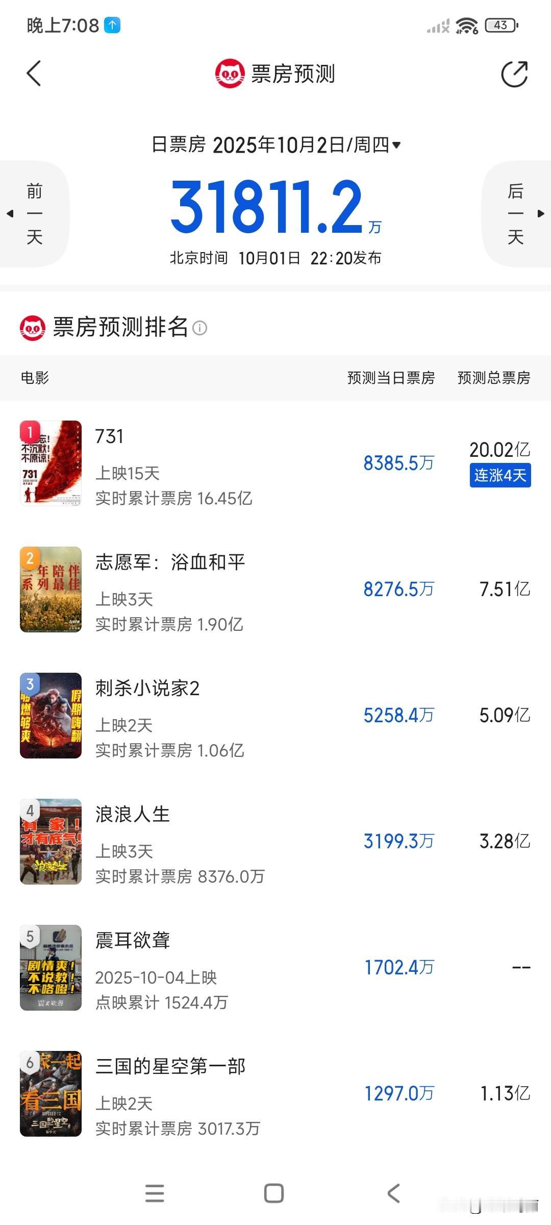 我的老天奶,731把志愿军打下去了[奸笑] 票房预测从15亿直接到20亿了🐮