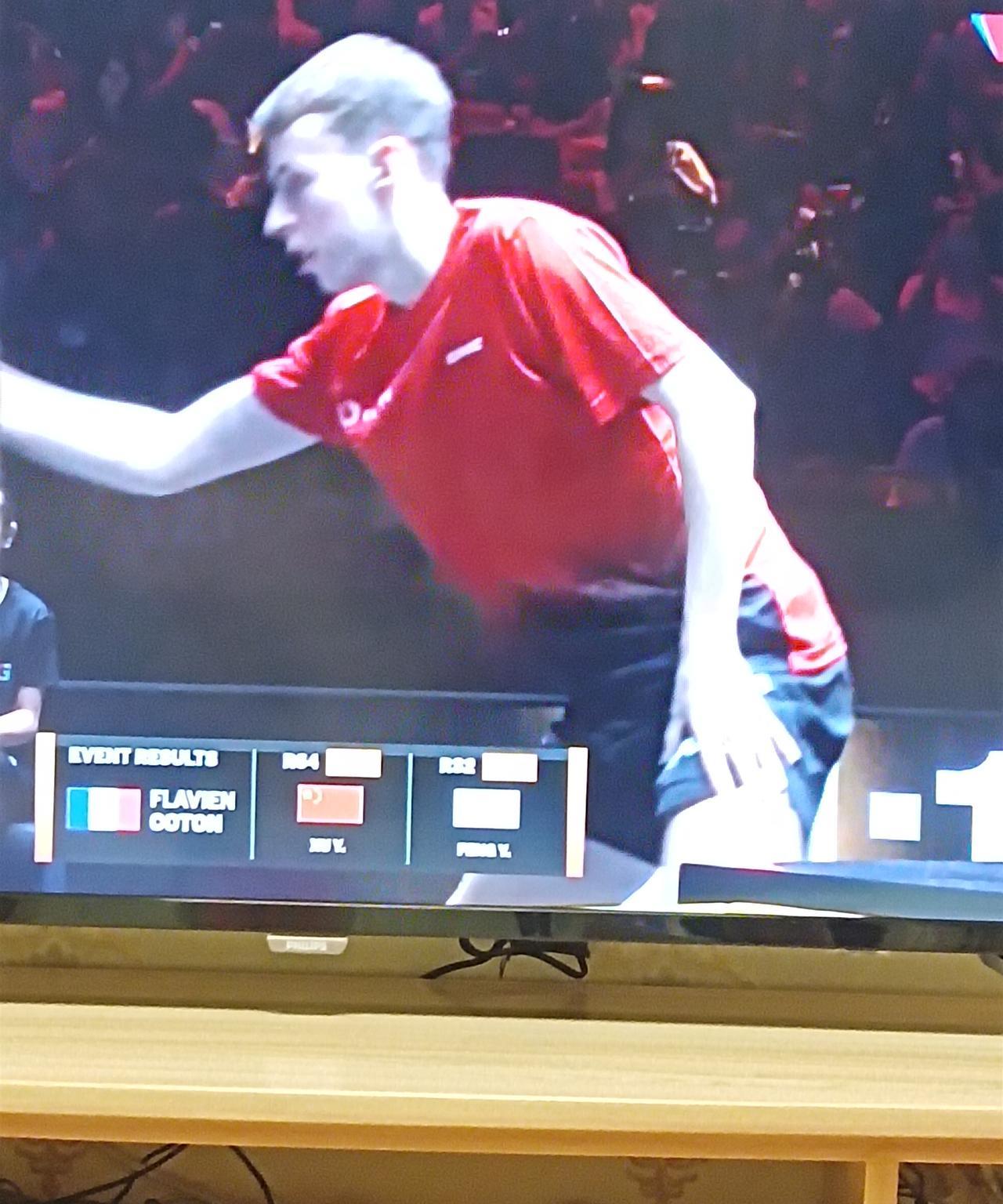 向鹏3:1逆转黑马法国新星科顿,晋级8强。 中国新星向鹏对阵法国新星科顿。还别说