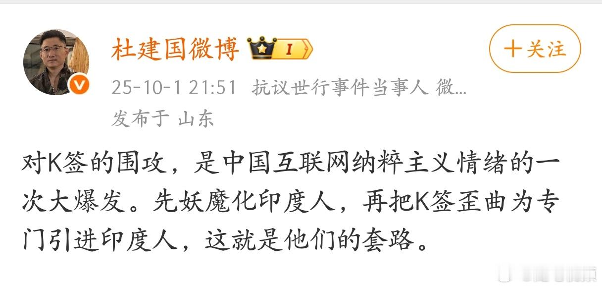 杜建国:对K签的围攻,是中国互联网纳粹主义情绪的一次大爆发。 ​​​