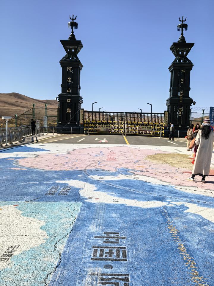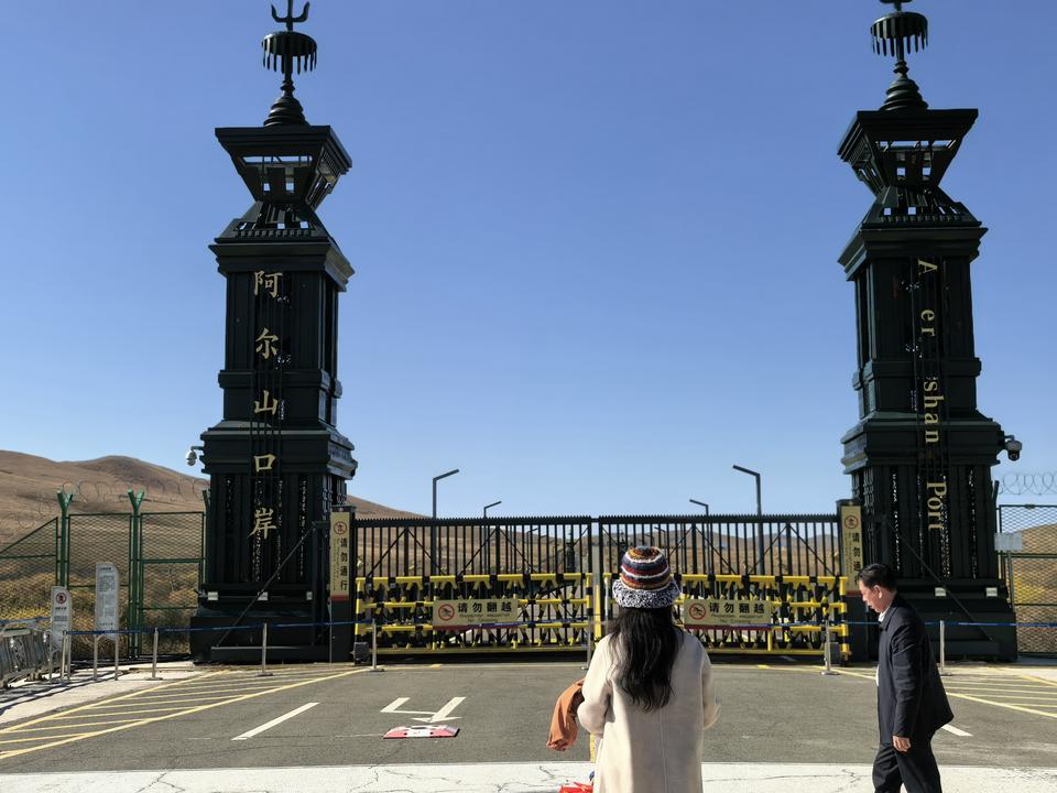 国庆节观国门 王传学 国庆佳节气象新, 满怀热情观国门。 亲身感受边境固, 略表一点爱国心。 国庆节早上,我们乘车前往中蒙边境阿尔山口岸,瞻仰雄伟的国门。国门横梁顶上悬挂着庄严的国徽,横梁上“中华人民共和国”七个红色大字在阳光中熠熠生辉。 走过国门,往前约两公里处,就是界桥,两边立着塔柱,上面分别用中、蒙文写着“阿尔山口岸”,进出关口的人和车辆,在此接受检查。 通过实地参观国门,亲身体会到边境管理的重要,及边境安则国家安全的道理。