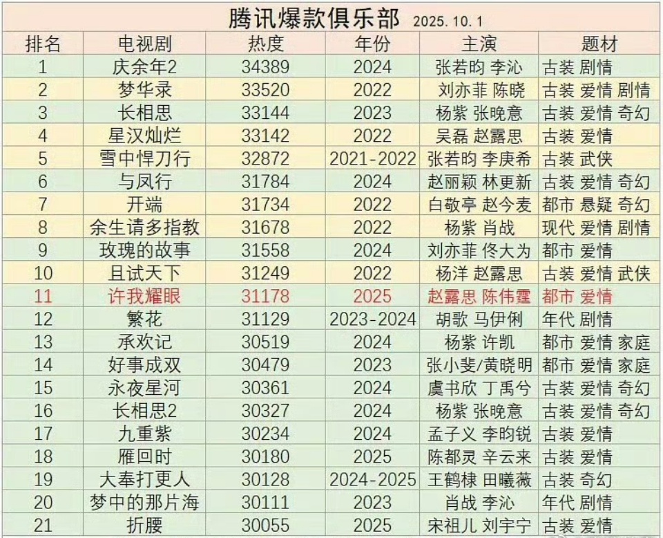 许我耀眼腾讯爆款排名许我耀眼爆款排名 啊啊啊啊赵露思这部剧爆🔥 啊!!赵露思[超话]