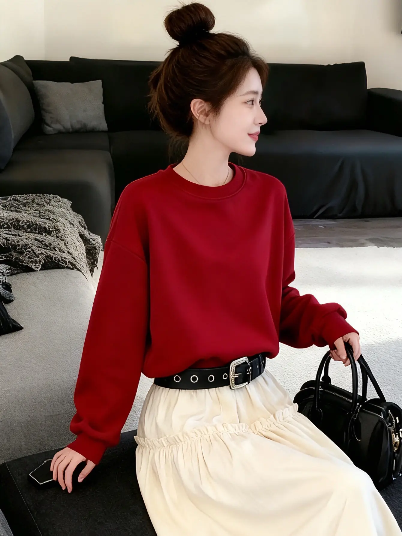 “秋日氛围感穿搭范本!姜黄色露肩针织衫温柔又显白,抽绳设计随性显瘦,搭...