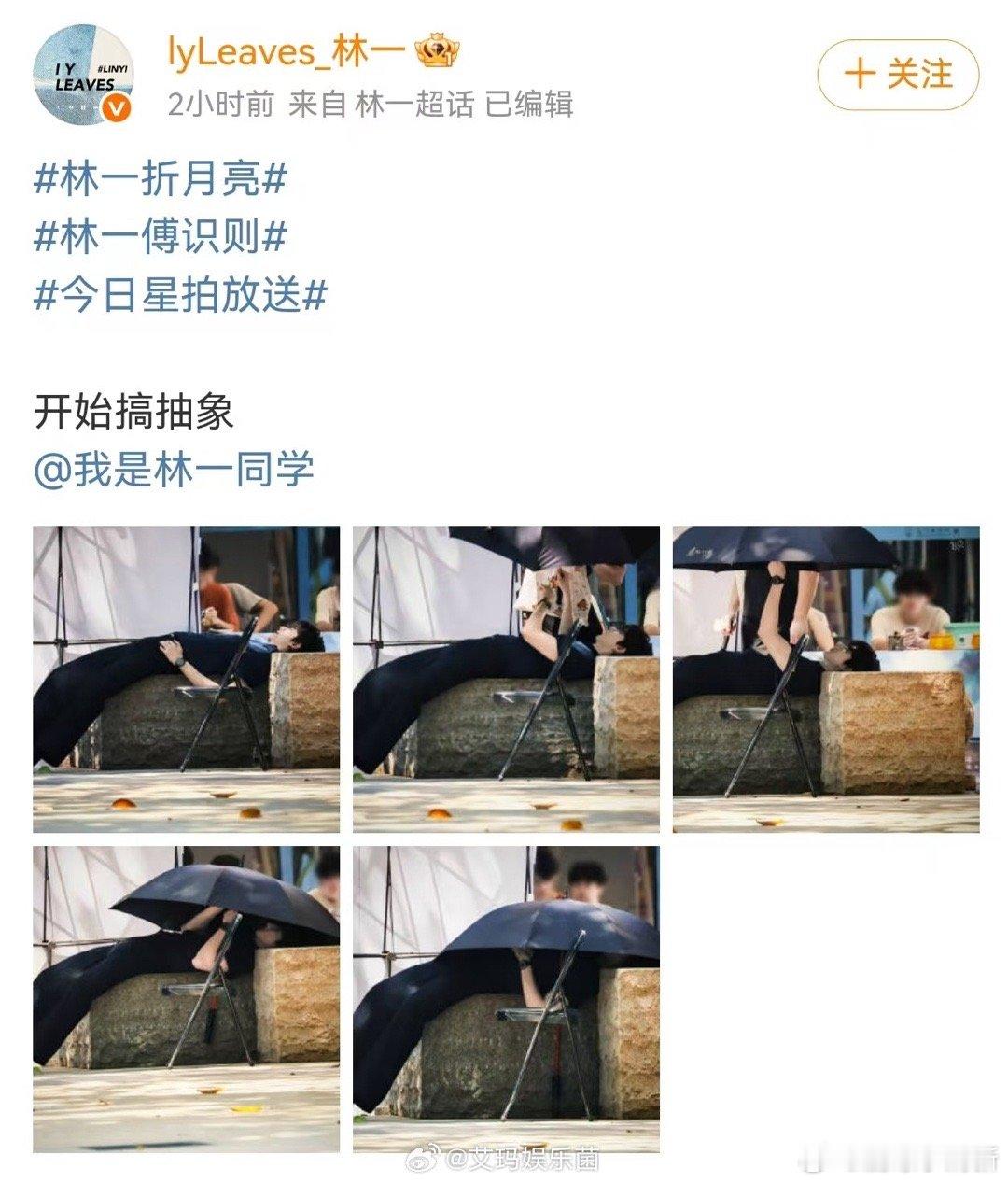 林一随地大小抽象 林一怕不是抽象界的天花板!吸氦气变声只是小case,自创“人面虎身”造型才叫脑洞大开,《折月亮》片场撑伞罩自己的样子,像极了想躲起来的“大蘑菇”,离谱又可爱!
