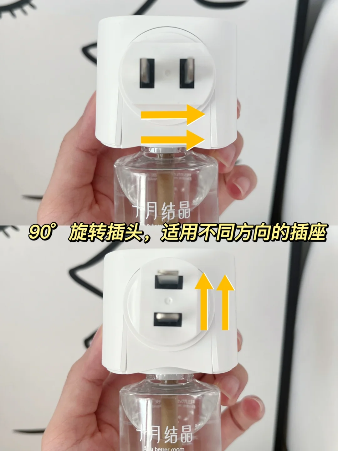 ①可旋转插头:适用不同的插头,保持电蚊香的竖立方向