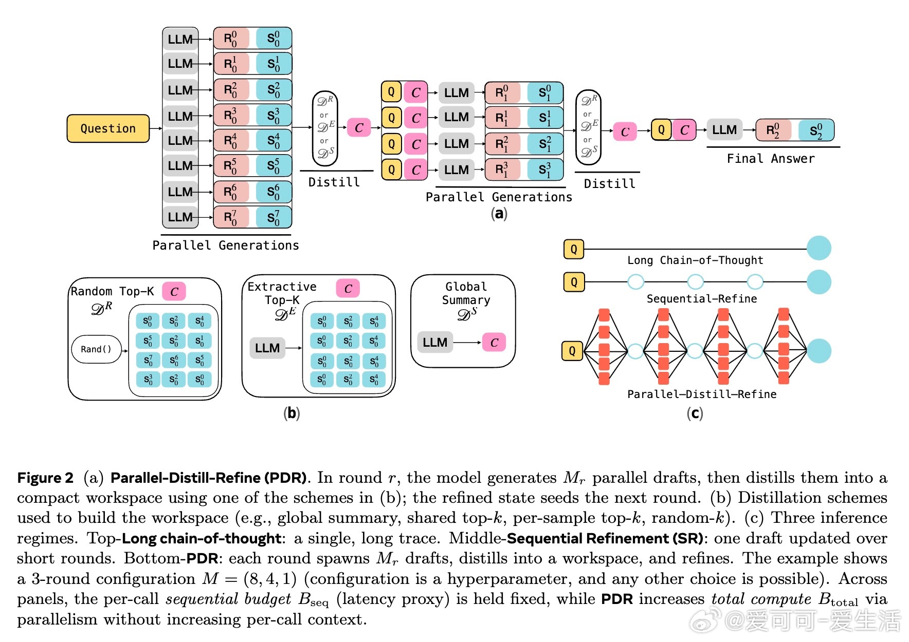 • \PDR的核心设计是:每轮总结并压缩多条推理轨迹的关键信息(一致点、矛盾、未解决问题),构建紧凑文本工作区,避免上下文线性增长与遗忘问题。