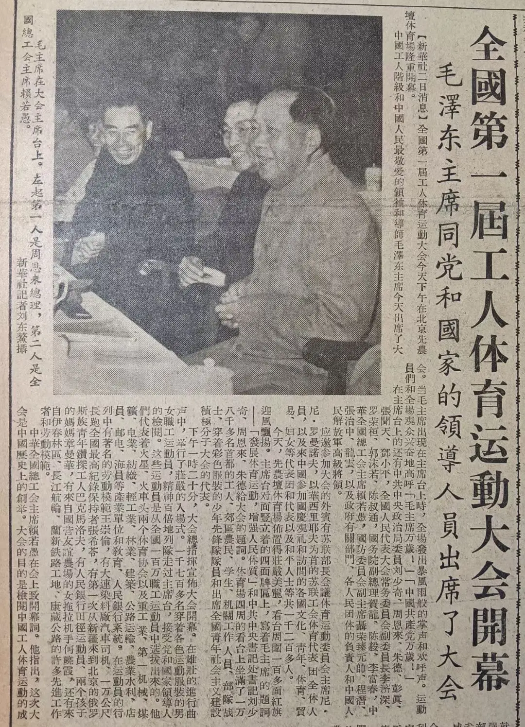 老报上的今天---七十年前的1955年10月3日《工人日报》头版报道:全国第一届工人体育运动大会开幕,毛泽东主席同党和国家的领导人员出席了大会。