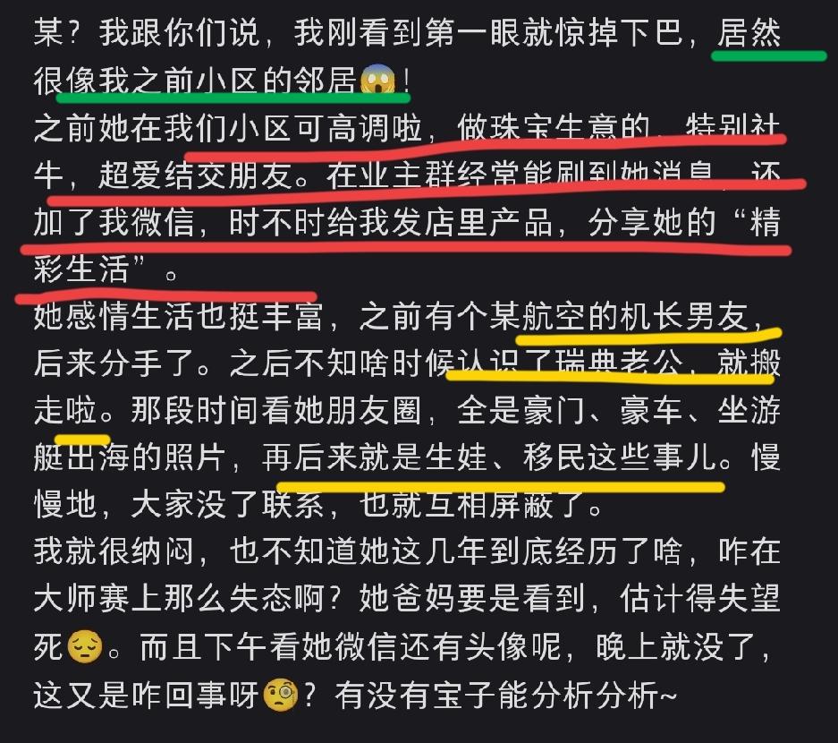谢女士前邻居发文,称她是小男孩亲妈,做珠宝生意的! 绝大多数母亲一般都不会带幼小的孩子去酒馆就餐,谢女士不但带着她宝贝去了,还让孩子拿着烈性8+1拍视频。 自己喜欢也就罢了,她也真不怕几岁的娃娃沾染上坏习惯。 难怪她的前邻居说她以前就特别高调、社牛、爱分享日常,只要是自己认为美好的,就要晒。 就像她儿子有瑞典护照和中国旅行证这件事,都要特意分享出来。 这是一个特别需要别人认同与赞美的女士。
