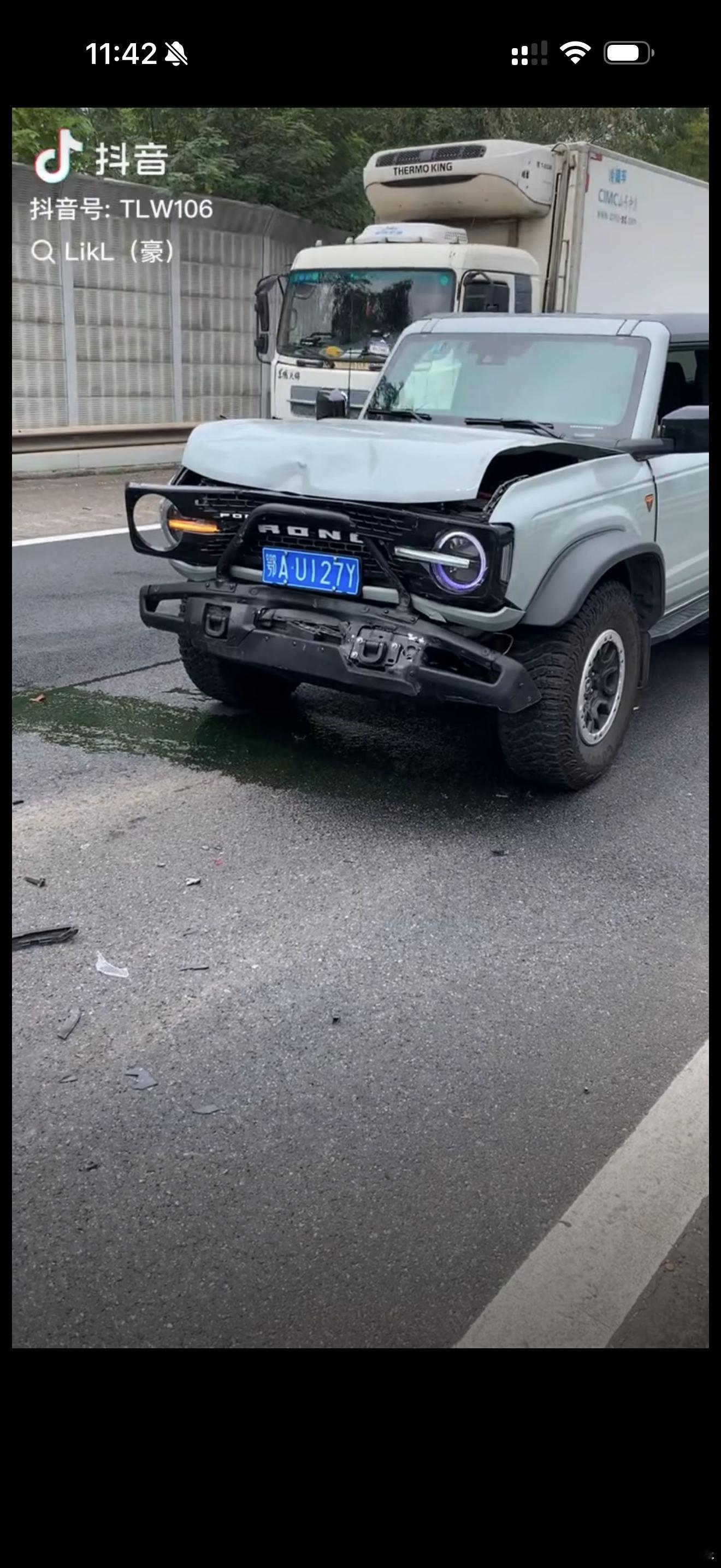 事实上这只是因为烈马悬挂软,即将追尾时急刹车(但还是撞上了)车头被压下去。又因为改装了一个设计极度不合理的2B杠,可以看到这根本不是那种整体改装的,而是铁管直接加装在原车杠上。它在碰撞时变成了一个杠杆,撞顶端,一撬,把原车保险杠给撬下来不说,铁管给按到车头,把前脸怼花了。就这么点事。
