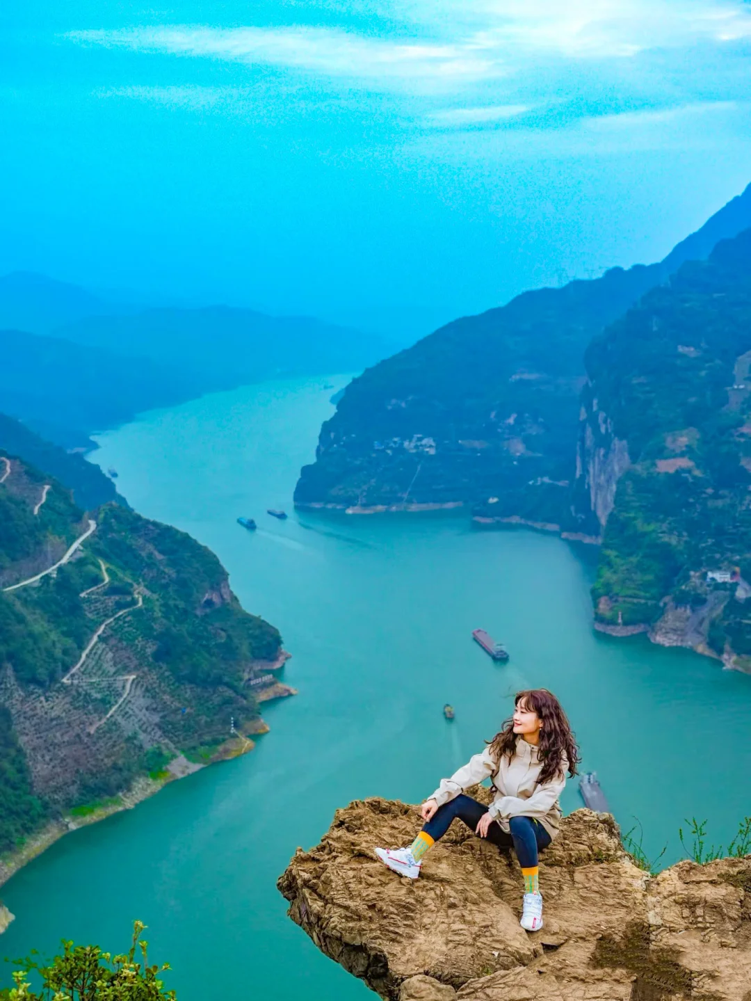 ✅G348三峡公路墙:靠着公路墙,随意摆几个姿势,就能拍出文艺风大片。