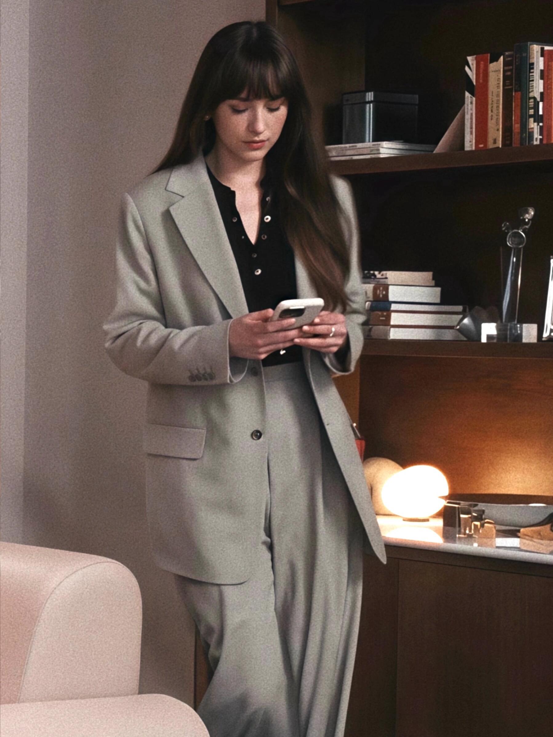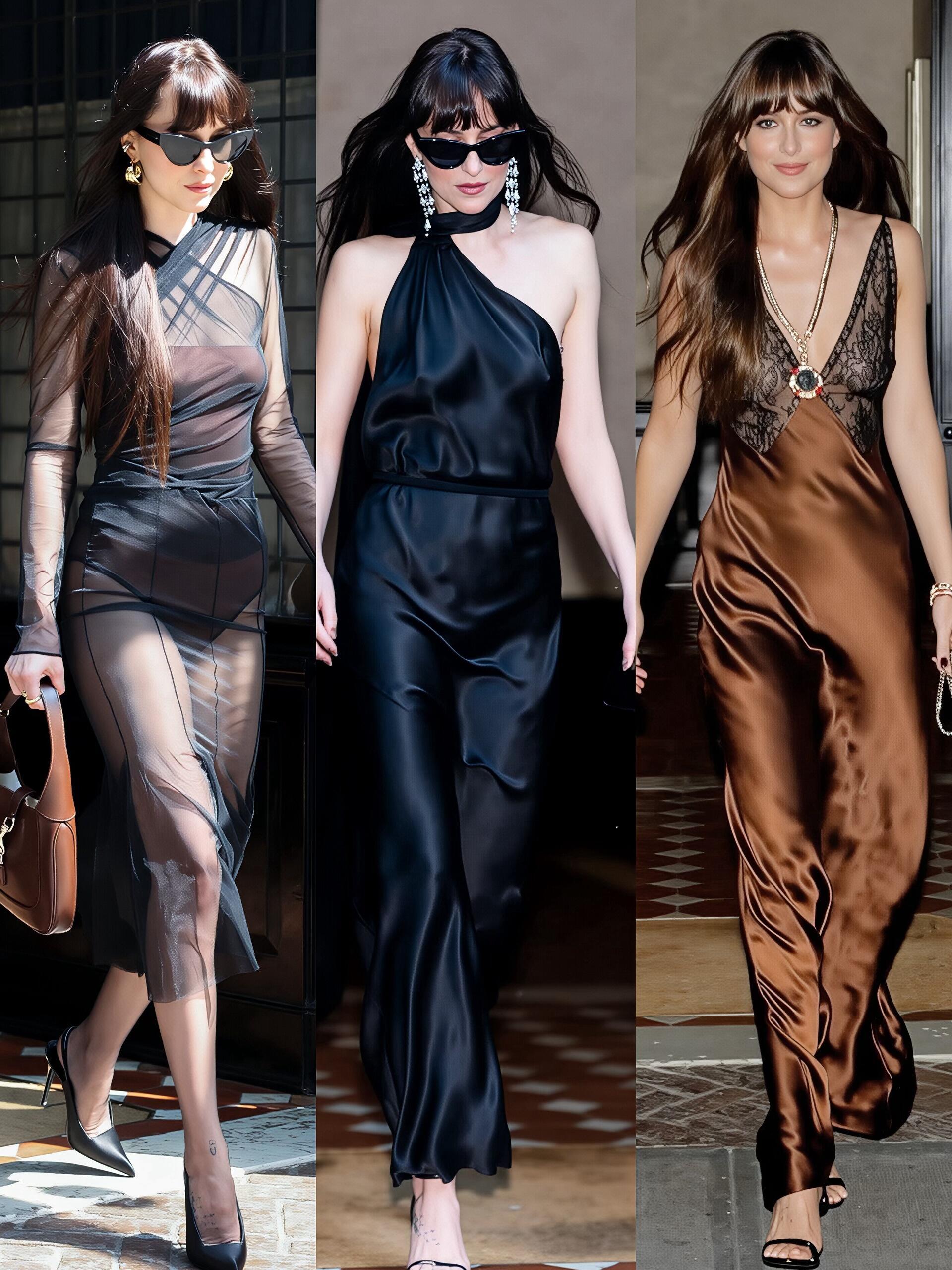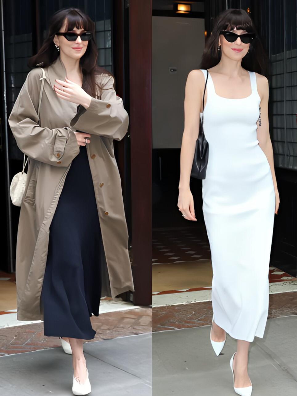 Dakota Johnson(达妹)堪称最会穿的女明星,其通勤穿搭让人梦回外企快乐时光,白天是着职业装、具高智感的 office lady,夜晚换抹胸连衣裙,尽显松弛浪漫。