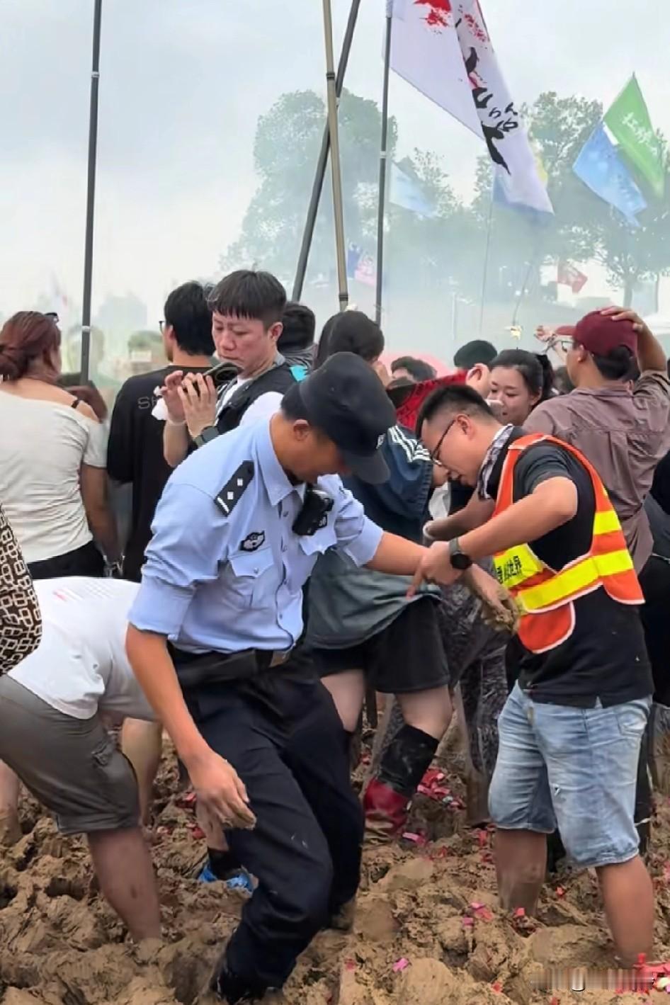 越看越好笑,此刻他只要一使劲,他的脚就会从这个鞋里飞出来,然后他再用两只手把这个鞋拔出来,然后再穿进去,再踩到下一个洞里,再循环 泥地摔跤脱臼了,喊了120去救,120进去陷那了,喊了110去救,叔叔进去也陷那了,又喊119去救,蓝朋友进去也陷那了 警察同志巡逻了四个小时,走了6米,后面天黑了,蜀黍们都遥远的看着他们玩泥巴。最后音乐节结束了演员明星都走了,观众们杵在泥地里出不来走不掉 拍照,向单位领导报备,因为自然灾害损失雨靴一双,月底财务报损,然后警官就可以金蝉脱壳光脚回单位再领一双新雨靴了,支持不种地了以后,各行各业的自救能力变弱了哈哈