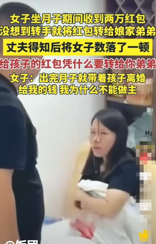 “遇到扶弟魔了?”“女子坐月子期间收到2万红包,没想到转手就将红包转给了娘家弟弟。”丈夫得知后将女子数落了一顿,说:“给孩子的红包,凭什么转给你弟弟?”女子:“出完月子就带着孩子离婚,给我的钱,我为什么不能做主?”   最近湖南长沙的一桩家庭纠纷在网上闹得沸沸扬扬,把“婚姻里的家庭边界”这个话题又推到了大众眼前。   女子和丈夫结婚三年,刚迎来第一个宝宝,本是双喜临门的时刻,女子正处在坐月子的关键时期,亲友们纷纷提着礼物、包着红包前来道贺,其中一份2万元的红包格外显眼。   按当地习俗,这笔钱是给新生儿的成长祝福,可女子没跟丈夫丈夫打一声招呼,直接就把这笔钱转给了娘家弟弟。   丈夫下班回家得知后,瞬间火冒三丈,冲到卧室数落女子:“这是给孩子的红包,是孩子未来的奶粉钱、教育基金,凭什么你一声不吭就转给你弟弟?”   女子抱着怀里的宝宝,也不甘示弱地回怼:“出了月子我就带孩子离婚,这钱是给我的,我想怎么花就怎么花!”这段充满火药味的争执被来探望的亲戚悄悄拍下,传到网上后,一下子就引爆了舆论。   深入了解后发现,女子的弟弟最近打算做电商创业,要进货、租仓库,到处都是用钱的地方,资金缺口不小,女子从小和弟弟感情就好,觉得弟弟创业是正经事,帮衬一把是应该的,所以没多想就把这笔红包转了过去。   而在丈夫看来,孩子刚出生,光是每月的奶粉、尿布就不是小数目,以后还有早教、上学的开销,这笔2万的红包是孩子的“启动资金”,妻子的做法完全是不顾小家庭的未来。   其实这不是他们第一次因为“贴补娘家”闹矛盾了,之前丈夫就发现女子经常偷偷给娘家塞钱,虽然每次数额不大,但次数多了也让他心里很不舒服,这次的红包事件,算是把积压的矛盾彻底引爆了。   此事在网上发酵后,网友们观点各异:   有网友直言:“不管红包名义上给谁,夫妻间这么大笔钱的支出都该商量,不然感情迟早出问题。”还有网友感慨:“婚姻里最怕的就是一方只顾原生家庭,不顾小家庭,这样的‘扶弟魔’行为真的很伤感情。”   也有网友理性分析:“得先明确红包的归属,若亲友明确是给孩子的,就该为孩子留存;若属于产妇个人,她有支配权,但夫妻间的沟通必不可少。”   这件事也让我们明白,婚姻中,金钱支配的规则、家庭边界的划分以及夫妻间的有效沟通至关重要,若双方都只站在自己的立场,不愿尝试理解对方,再微小的矛盾也可能引发婚姻危机。   那么你们怎么看待这件事呢?欢迎在评论区说说你们的看法吧!