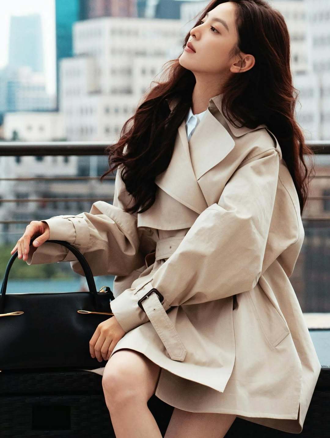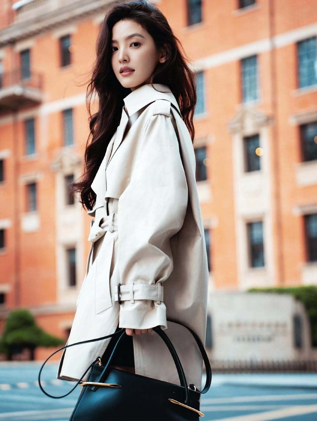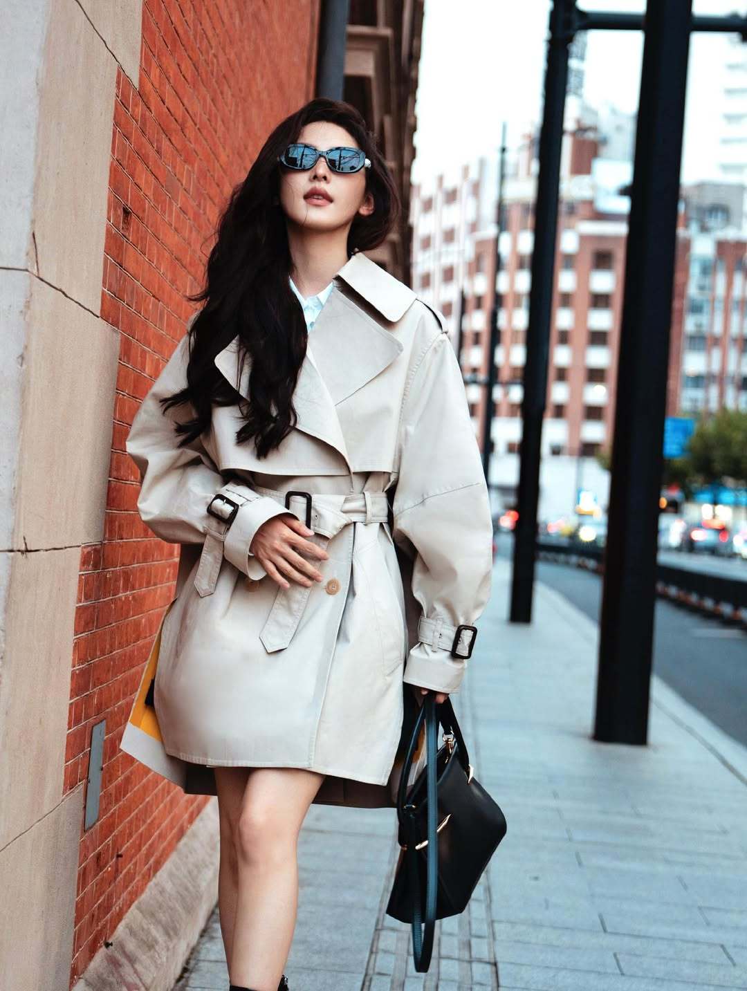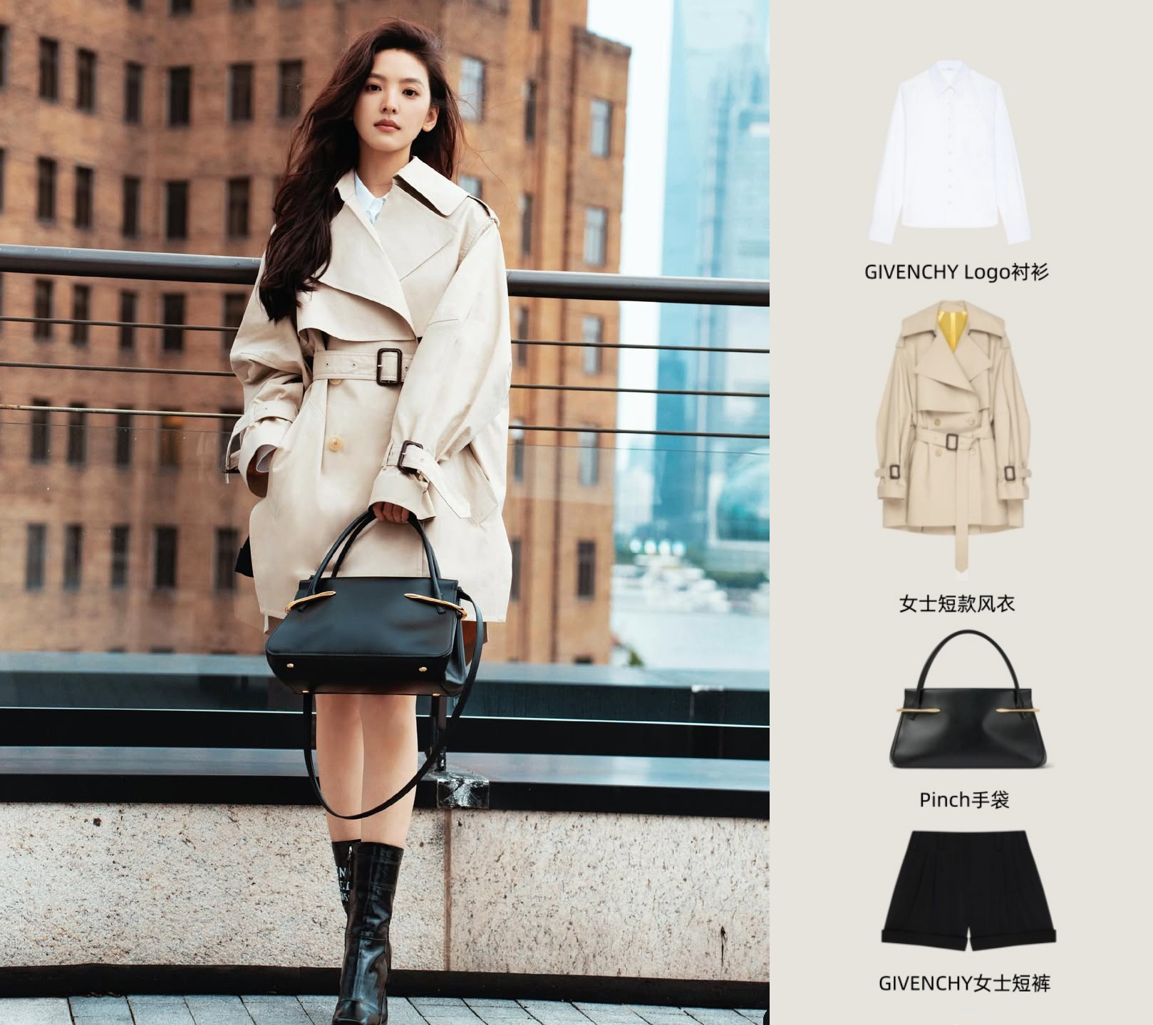 章若楠首次参加品牌大秀,机场造型上身纪梵希短款风衣,内搭白衬衣及线条利落的Pinch手袋,优雅干练气质尽显,美丽的都市女郎。