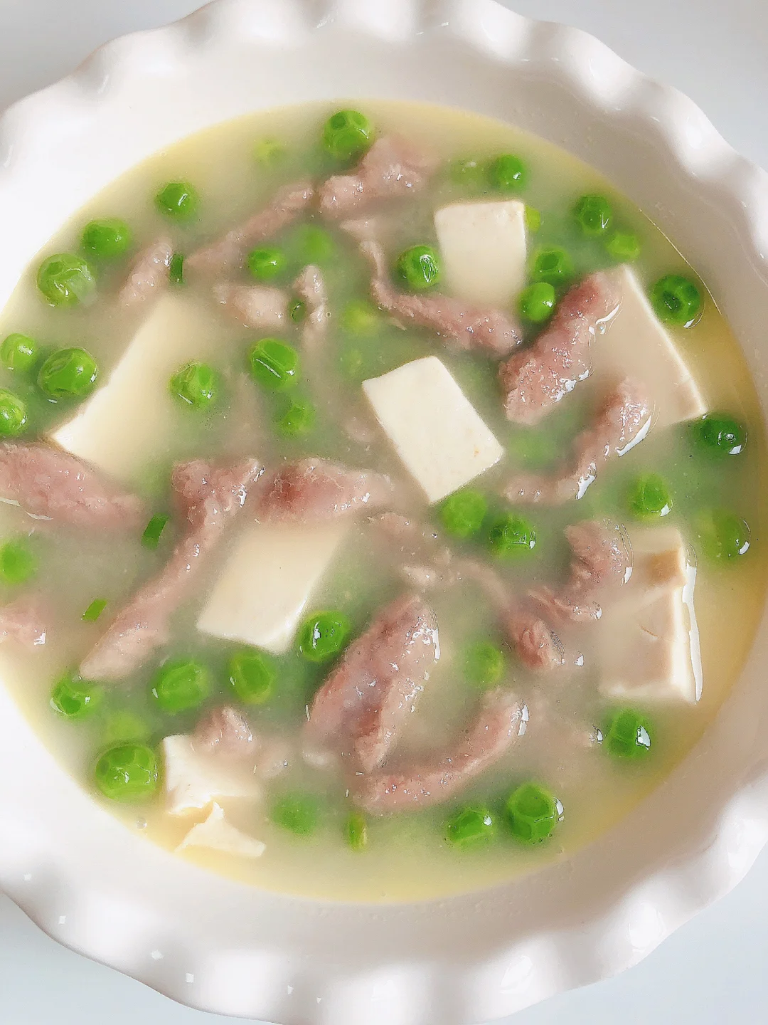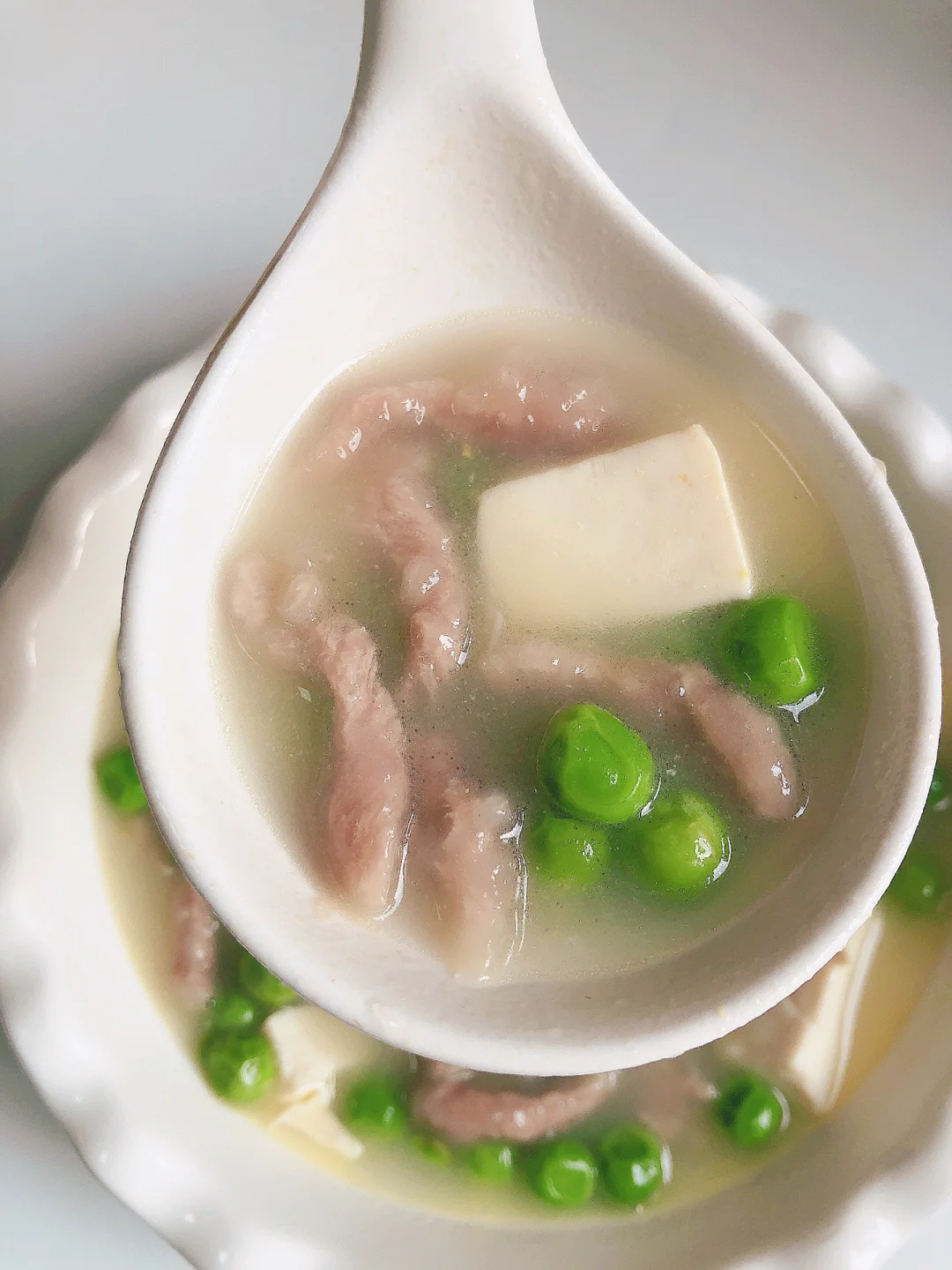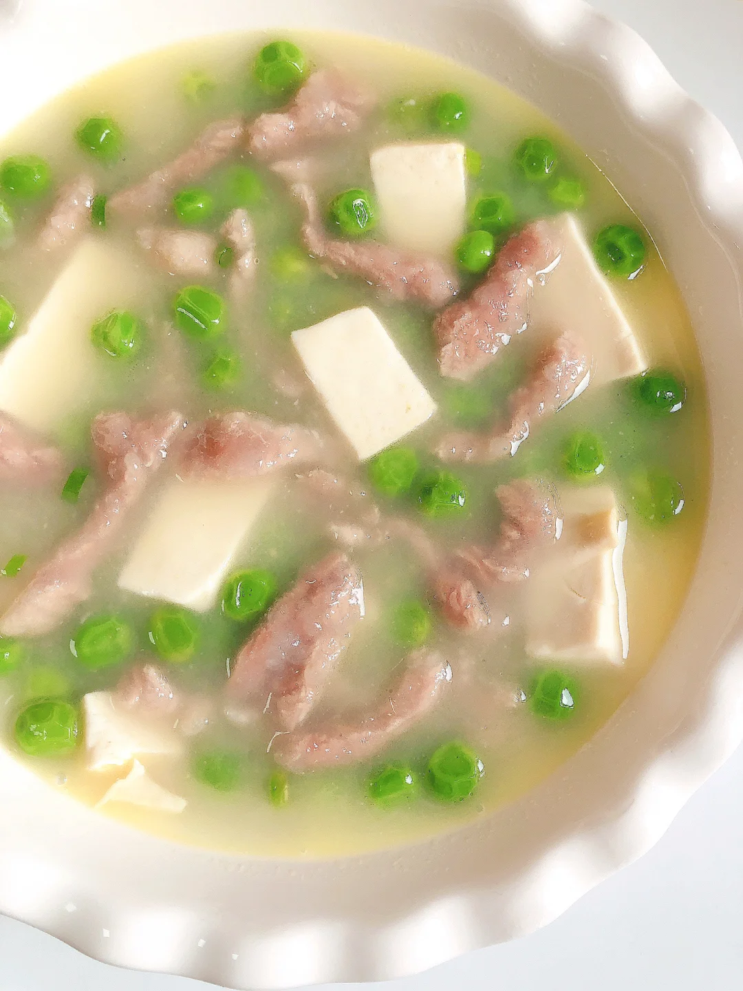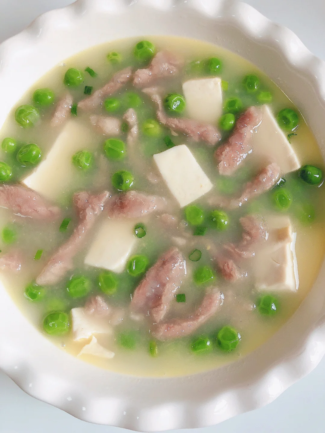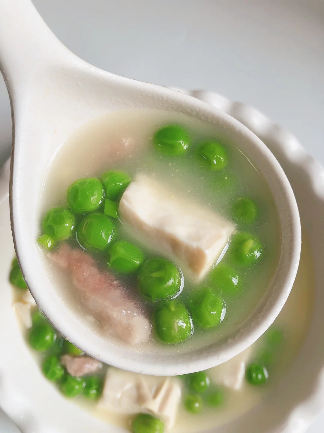 春天真的很适合吃一些季节菜,所以也是孩子长高的季节,今天给孩子安排了一道豌豆豆腐肉丝汤,非常鲜美的一道汤[勾引R] 我没忍住连喝两碗[点赞R][点赞R]