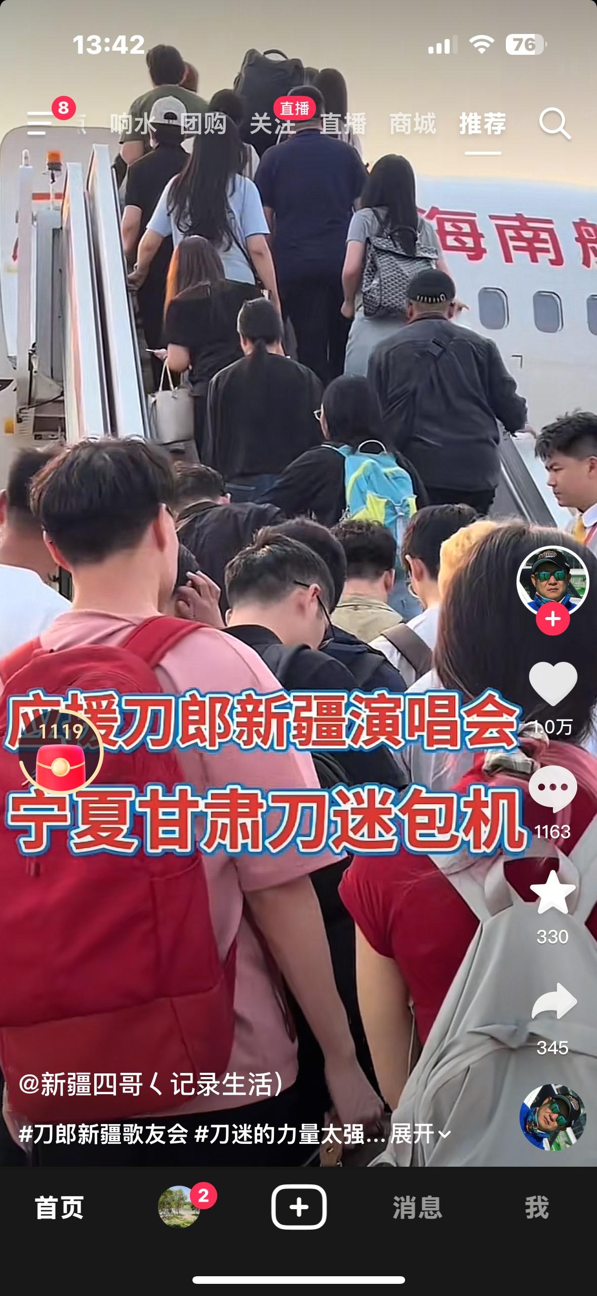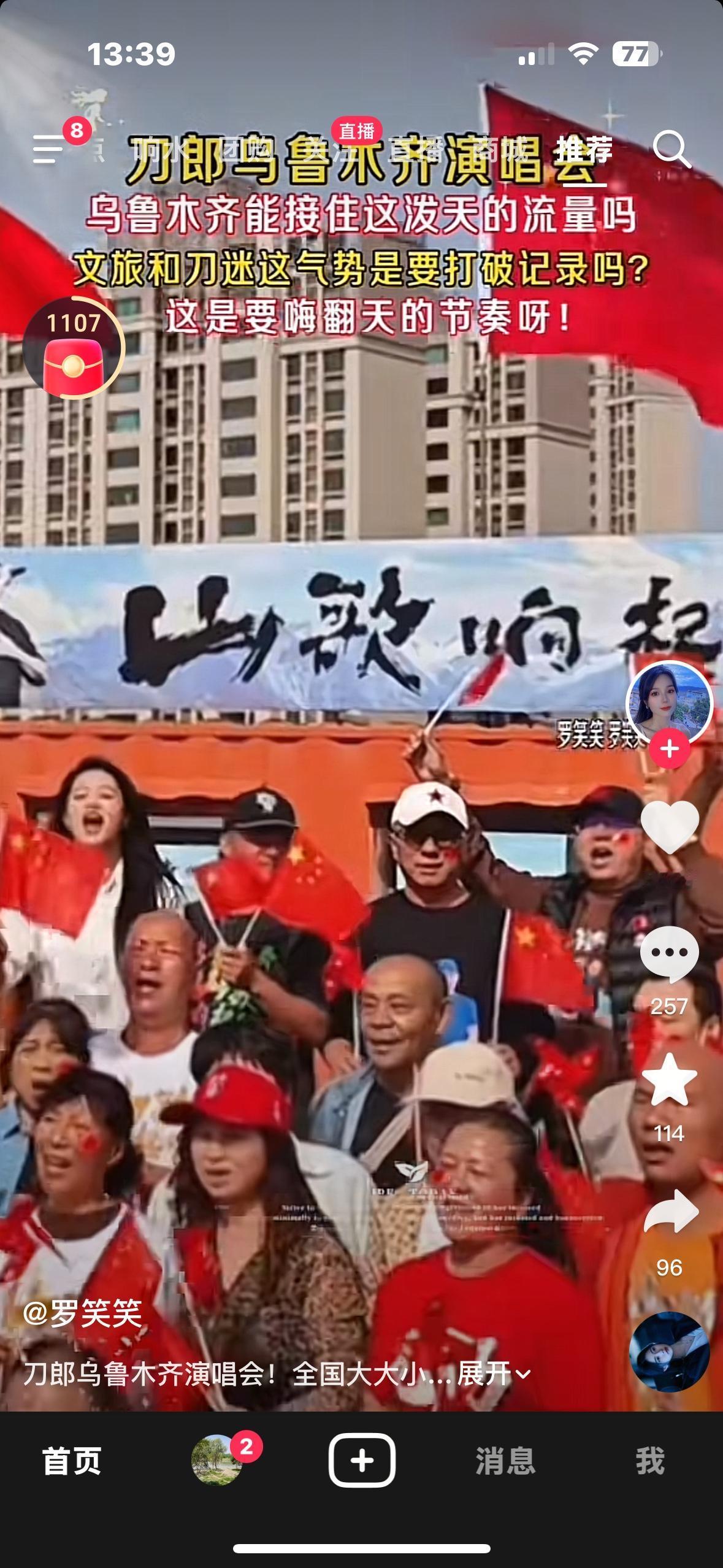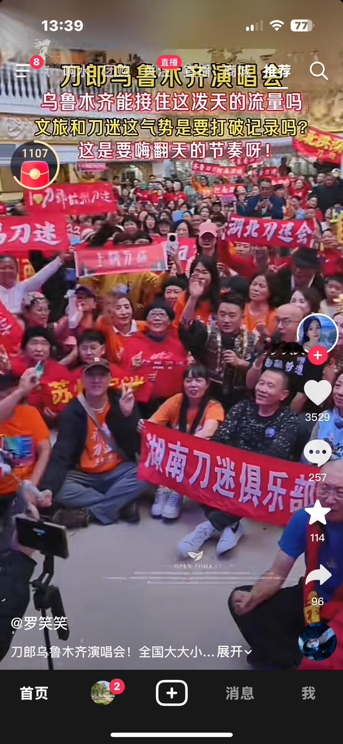 爱刀什么时候?大大小小们快来接龙 太震撼了!刀郎老师演唱会,新疆收关之战在即。全国各地的刀迷纷纷奔赴新疆。有包机,有包专列,有自驾,有骑行。场面太壮观。这次汇聚新疆的刀迷一定打破历史。真是为了一个人,奔赴一座城。新疆刀郎老师的第二故乡,一一定会接住这波流量,赢麻了。乌鲁木齐街道也到处都是刀郎元素:关于二道桥,刀郎驿站,二路汽车等等,不说了,直接上图 祝刀郎老师新疆演唱会圆满成功! 大大小小们接龙接起来,我先来:爱刀什么时候?爱刀天长地久 下面一起来看刀迷们奔赴新疆的壮观场面。