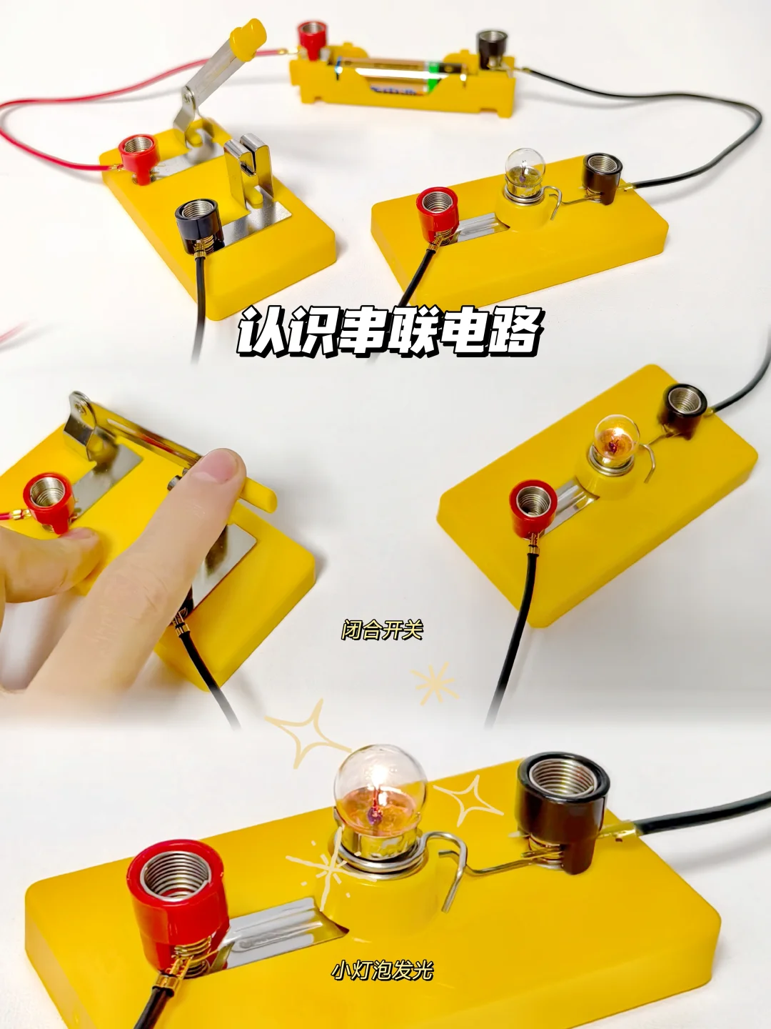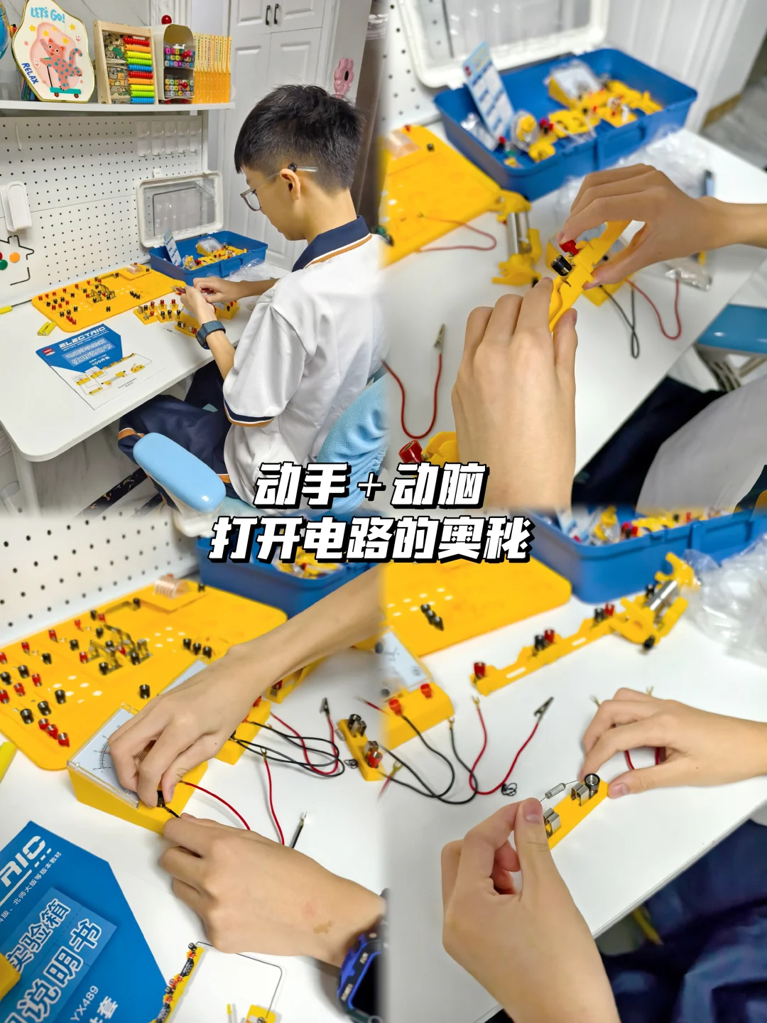 搭串联电路时,闭合开关灯泡亮的瞬间,娃秒懂 “电流只有一条路”;换并联电路,增减灯泡看亮度变化,不用死记公式也能 get 电压规律;就连看不见的磁场,组装电磁铁吸铁钉,匝数越多吸得越多,原理一下就通了!