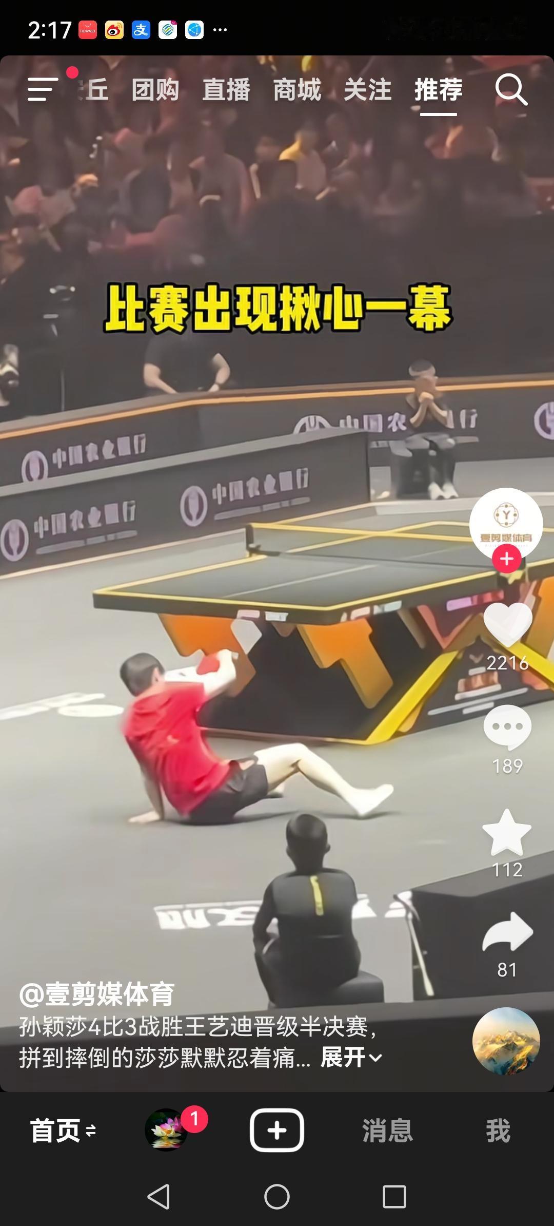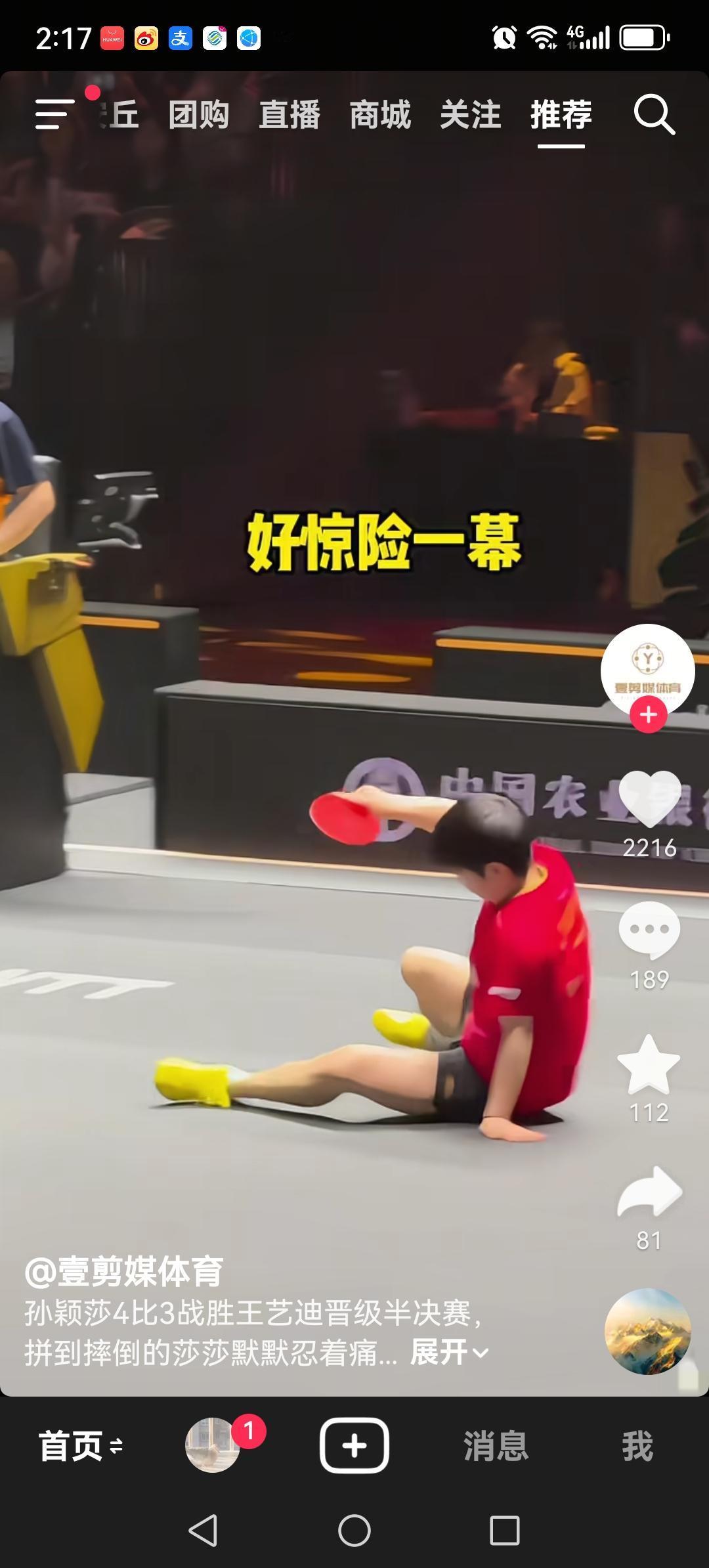 孙颖莎4:3艰难战胜队友王艺迪,挺进北京大满贯四强。比赛中孙颖莎为救一个球跌倒在地,险些受伤。本场比赛,王艺迪发挥的也很好,给孙颖莎制造了很大的麻烦。 这场比赛两人发挥的都很好,没有输家,为孙颖莎和王艺迪点赞!