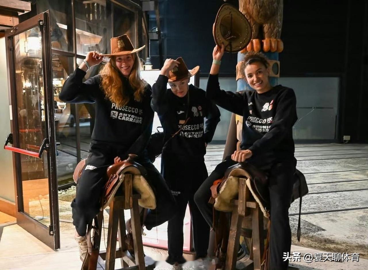 朱婷又出去接广告了!意大利科内利亚诺俱乐部红了之后,广告和赞助商真的是一个接一个啊!这不朱婷和她的队友们为了给欧洲老牌西餐厅集团拍广告,身穿西部牛仔衣服和帽子盛装出席!感觉朱婷这个赛季比上个赛季更能融入集体了,比较开放了,跟队友的关系更好了!