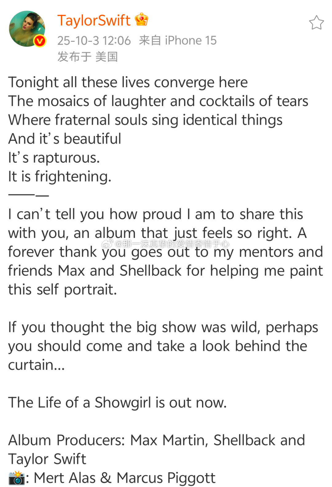 霉霉新专TaylorSwift[超话] 霉霉新专!一沫真挚的情话