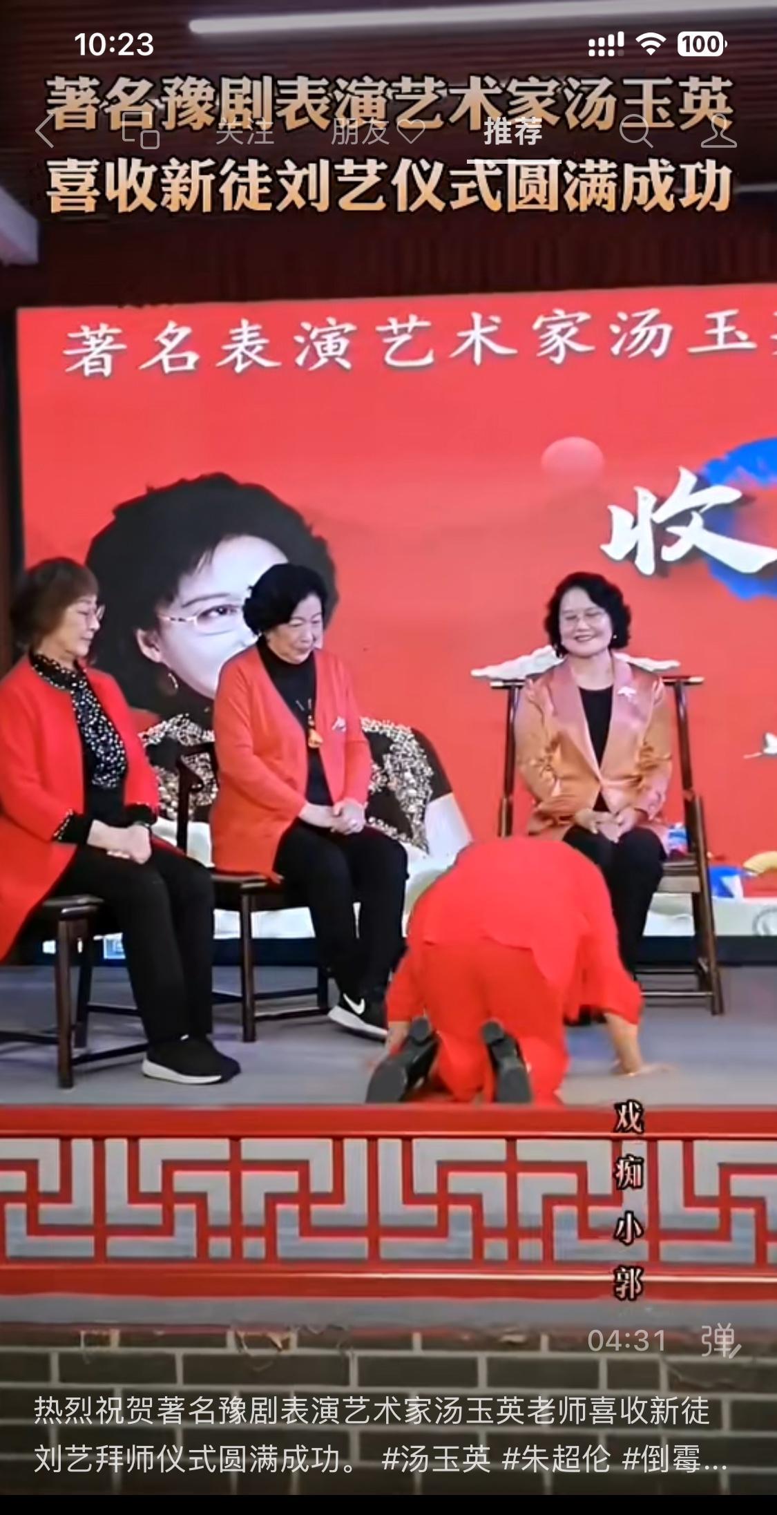 又见拜师。 戏剧圈的拜师风,持续延烧。 画面上的这一幕,是河南豫剧名家汤玉英的收