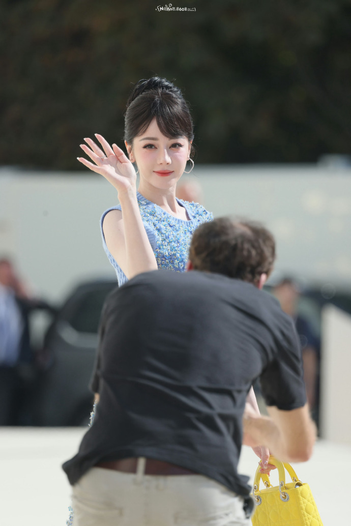 迪丽热巴真的美成公主了她身着特别定制的蓝色无袖花朵套裙,裙身布满立体刺绣花朵,搭配不对称剪裁与重工珠绣,极具公主风! ​​​