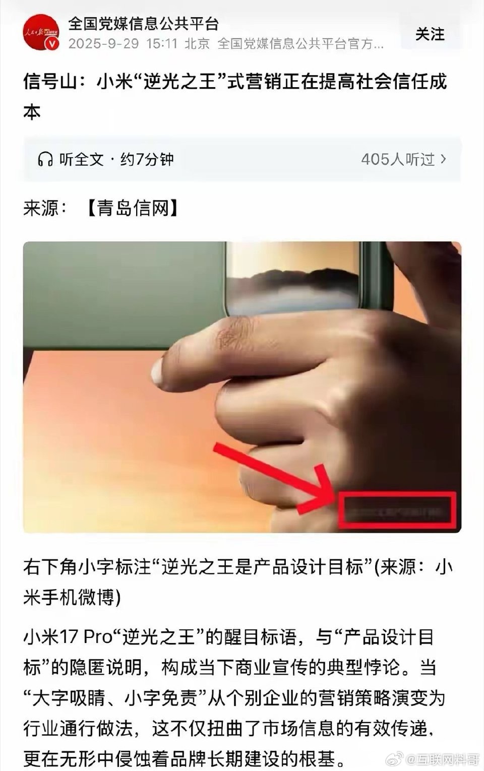 官媒又亲自下场抨击小米营销了!说的真够直接的!正在提高社会信任成本!