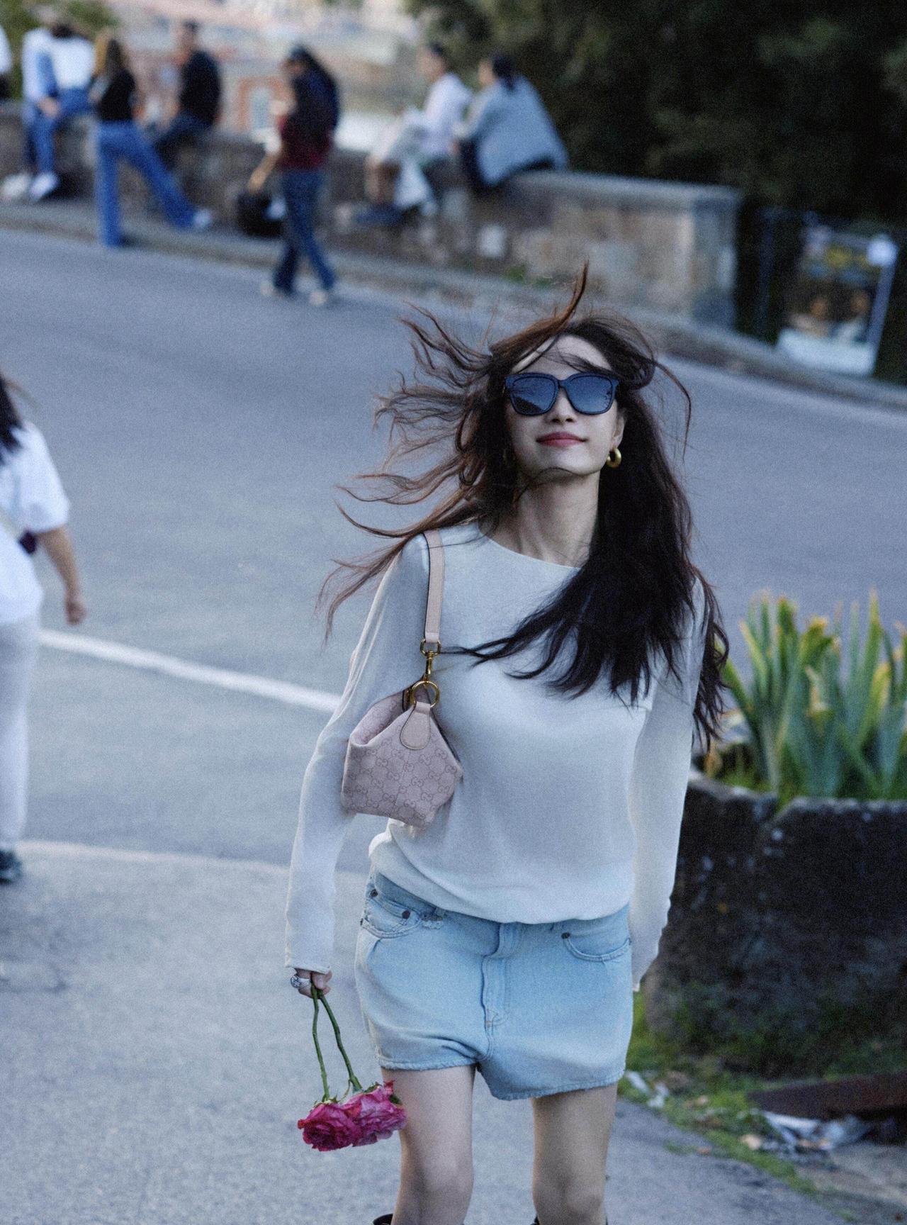 倪妮的松弛感绝了,超喜欢她的这一组街拍! 白T恤搭配一条浅蓝色的牛仔短裤,再加上长筒 靴,率性洒脱又帅气。 这一组也很适合小个仪们去模仿,再加上一只腋下包包更显高!