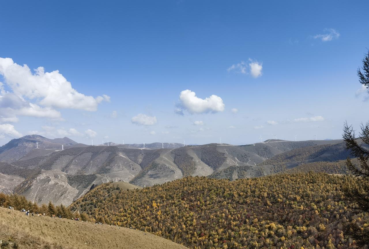 十一长假,不出去不死心,出去死的心都有了。 去张家口蔚县麻田岭徒步爬山9公里看五彩林。麻田岭号称北方的香格里拉。 人多,车多,景美,让人留连忘返。 徒步走到山上,天空的白云感觉触手可及,却屡屡得不到,他就像一个玩皮的小孩一会儿一变脸,忽然阳光照辉大地,让人晃了眼。 一会儿又阴云密布,像是要狂风大作,暴雨来临。 秋天的麻天岭草都已经枯萎,山上光秃秃的,可还有很多树林,成排站着,叶子也还在阳光照耀下泛着光。 五彩林,令人向往的地方。景如其名,有成片的山林,层林尽染。有红色的叶子,黄色的叶子,密密麻麻的像解放军在站岗放哨,美不胜收。